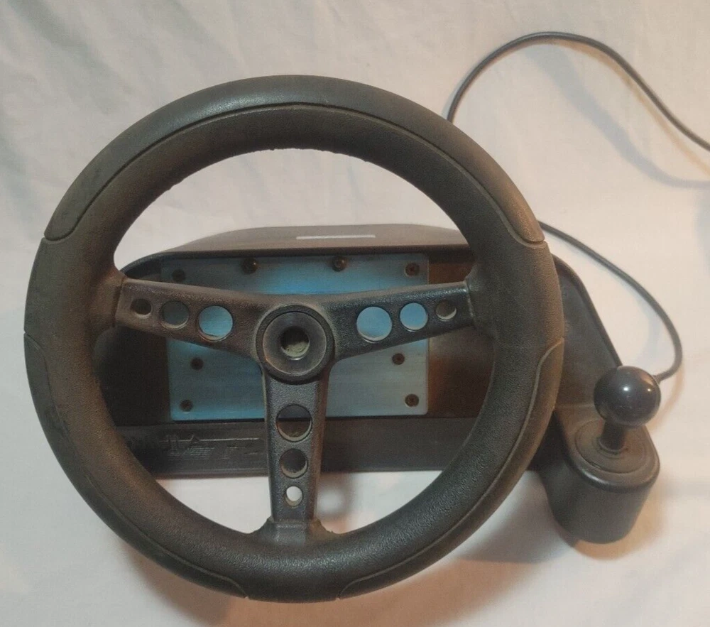 - Please Read Description! Important! - Vintage Thrustmaster Formula T2 Steering Wheel/Shifter Set (with add-on pedals) for PC One suction cup (three suction cups remaining) missing from steering wheel/shifter set.