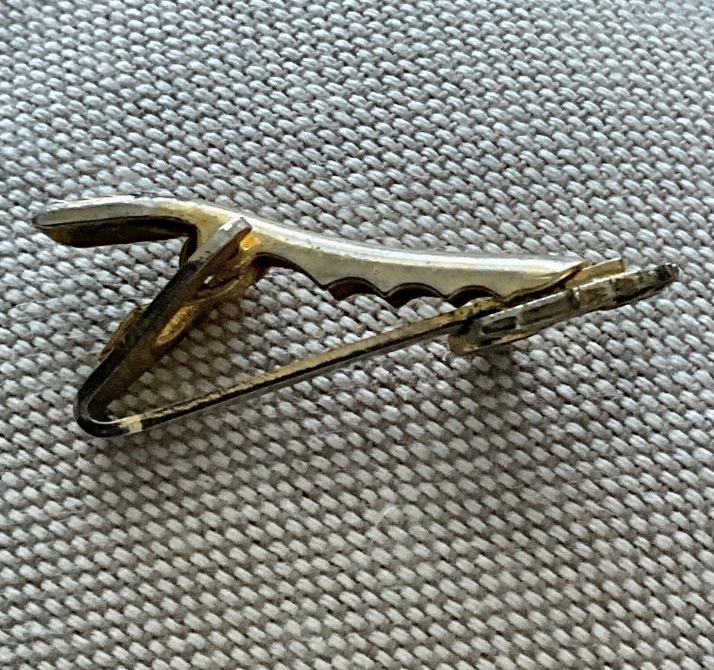 Year Manufactured:1950-1959Department:MenAntique:NoVintage:YesSigned:YesOriginal/Reproduction:OriginalEra:1950sType:Tie Bar/ClipColor:GoldJewelry Department:FashionHandmade:NoTheme:WesternBrand:Unbranded