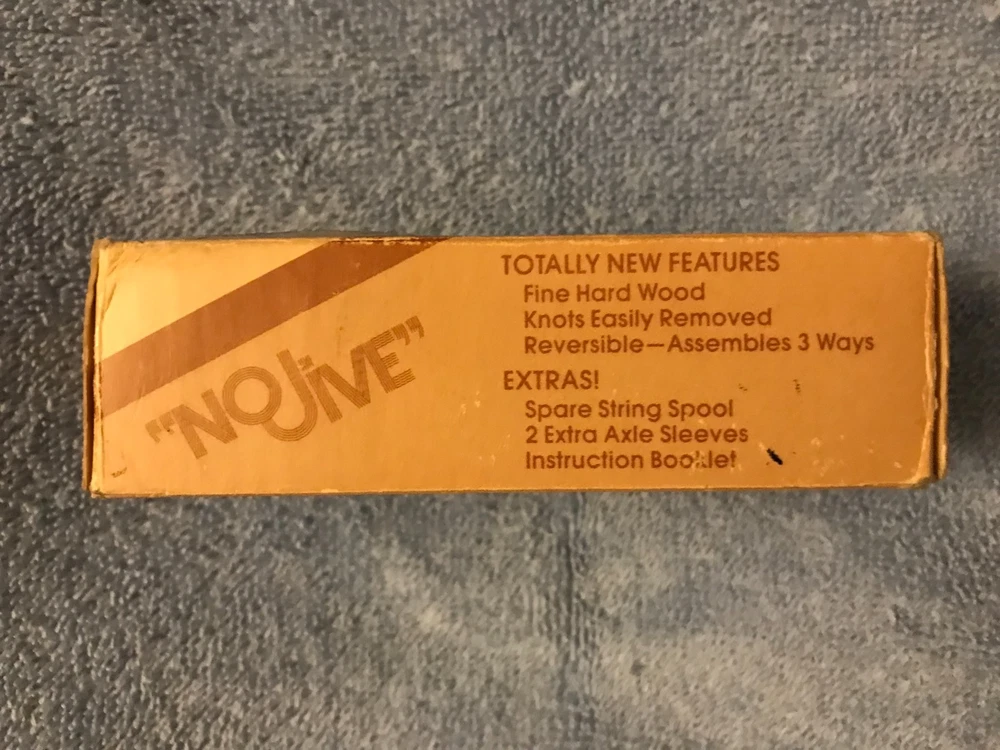 The Vintage Tom Kuhn's The Neiman Marcus NO JIVE 3in1 yoyo is a rare and collectible toy produced between 1979-1980. Made in the United States, this yoyo appeals to collectors of classic toys and enthusiasts of vintage yoyos. With its unique design and iconic branding, this yoyo is sure to be a sought-after piece for those interested in the history and nostalgia of these toys. new/used (looks like it was never played with but I can't guaranty that) in box with spare string spool 2 extra axle sleeves instruction book with lots of yoyo tricks in it. Box has some age damage check pics. price tag in pics is not the price.