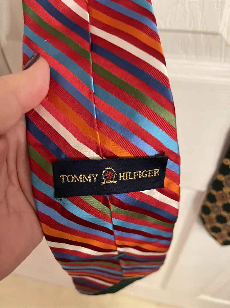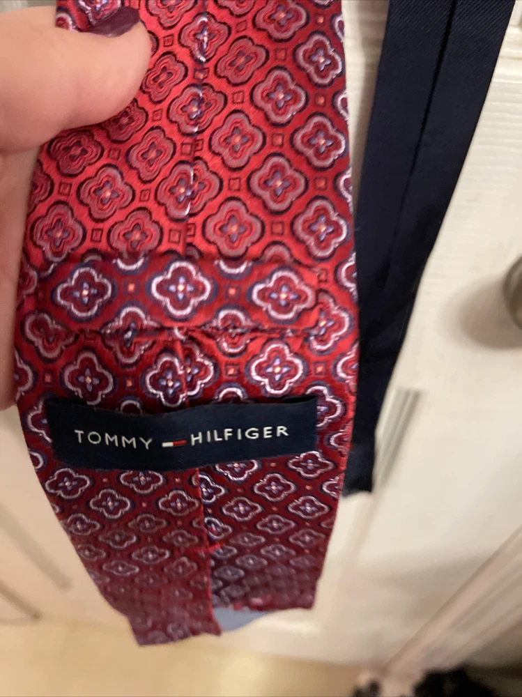 TOMMY HILFIGER Mens Red Plaid Tie 3.5 X 58 Slim Fit 2-Fabric Design