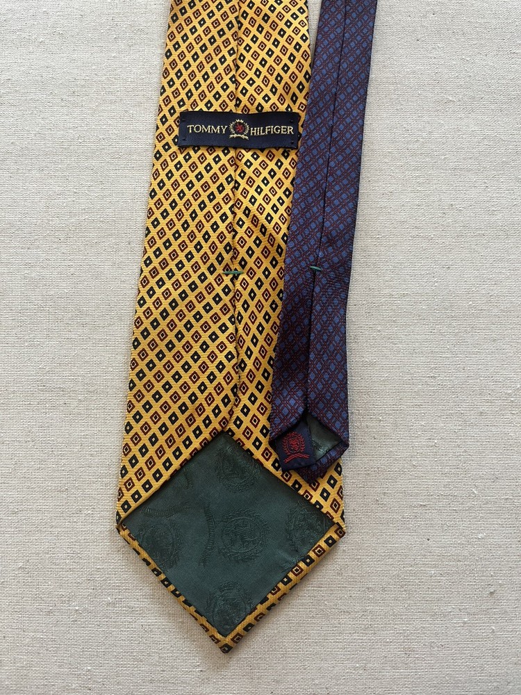 Vintage Tommy Hilfiger Tie Silk Yellow Geometric Blue And Red. Condition is Pre-owned. Shipped with USPS Ground Advantage.