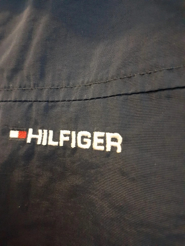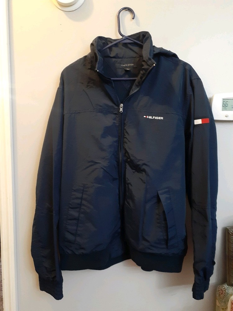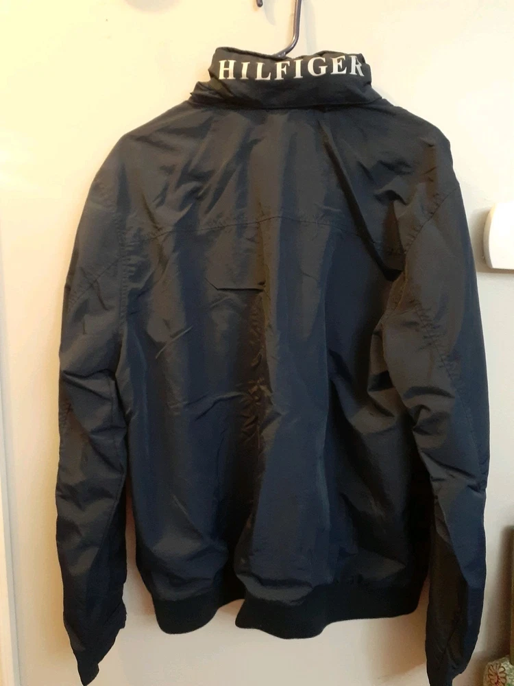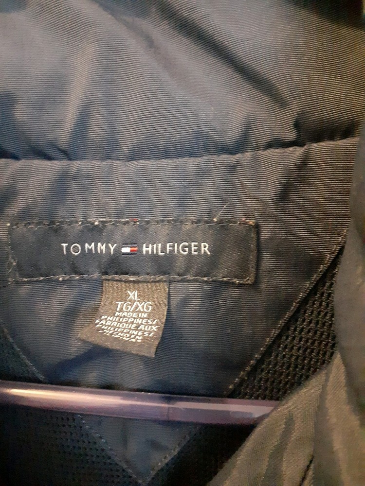 Smoke free home This vintage Tommy Hilfiger XL jacket in navy blue features a mid-length design with a windbreaker style. Made of nylon with a polyester lining, it is perfect for winter weather with its wind-resistant properties. The jacket includes a pull-out hood, full zip closure, and hidden pockets for added convenience. The embroidered accents and Tommy Hilfiger branding add a touch of style to this practical and stylish winter coat for men. Made in the Philippines, this jacket is a versatile and stylish addition to any winter wardrobe.
