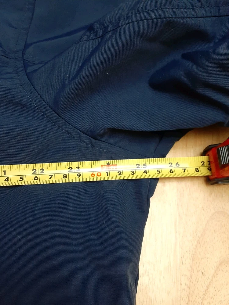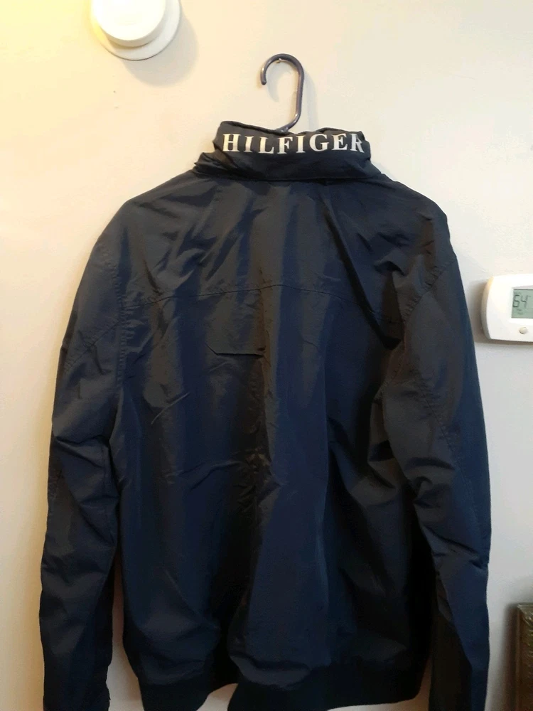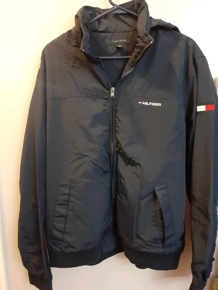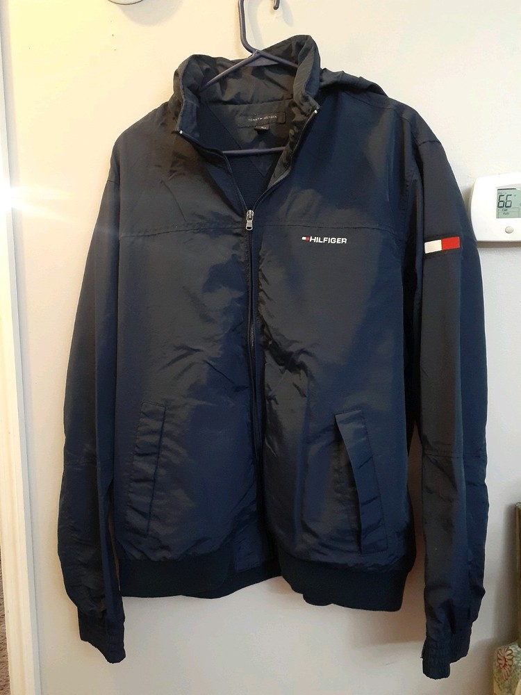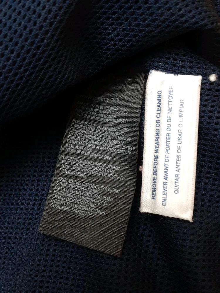 Smoke free home This vintage Tommy Hilfiger XL jacket in navy blue features a mid-length design with a windbreaker style. Made of nylon with a polyester lining, it is perfect for winter weather with its wind-resistant properties. The jacket includes a pull-out hood, full zip closure, and hidden pockets for added convenience. The embroidered accents and Tommy Hilfiger branding add a touch of style to this practical and stylish winter coat for men. Made in the Philippines, this jacket is a versatile and stylish addition to any winter wardrobe.