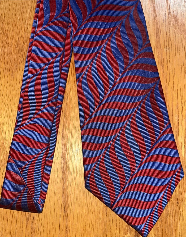 Vintage Turnbull & Asser London England Mens Tie Red & Blue Wavy Lines 100% Silk Handmade Luxury Tie Classic Size 57” Long 4” Wide Great Overall Condition Very Nice To Add To Any Tie Collection Please See All Pics As Part Of Full Description