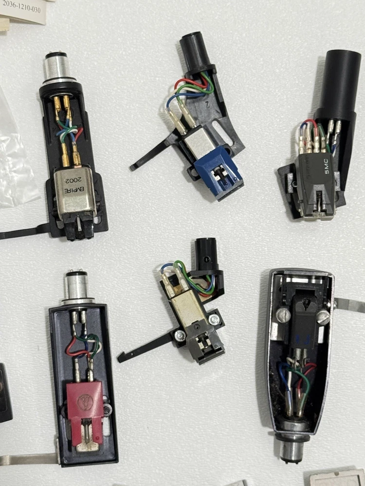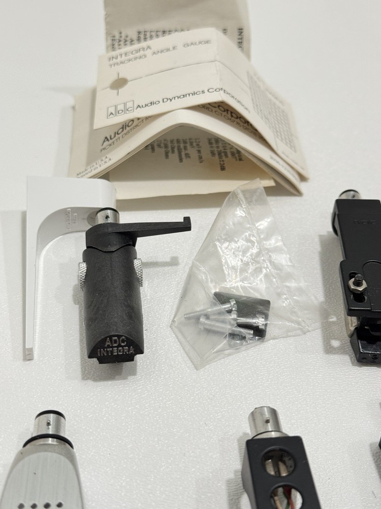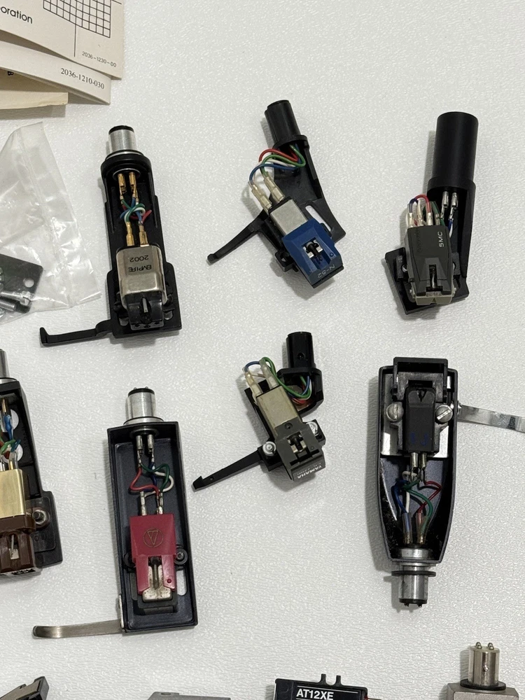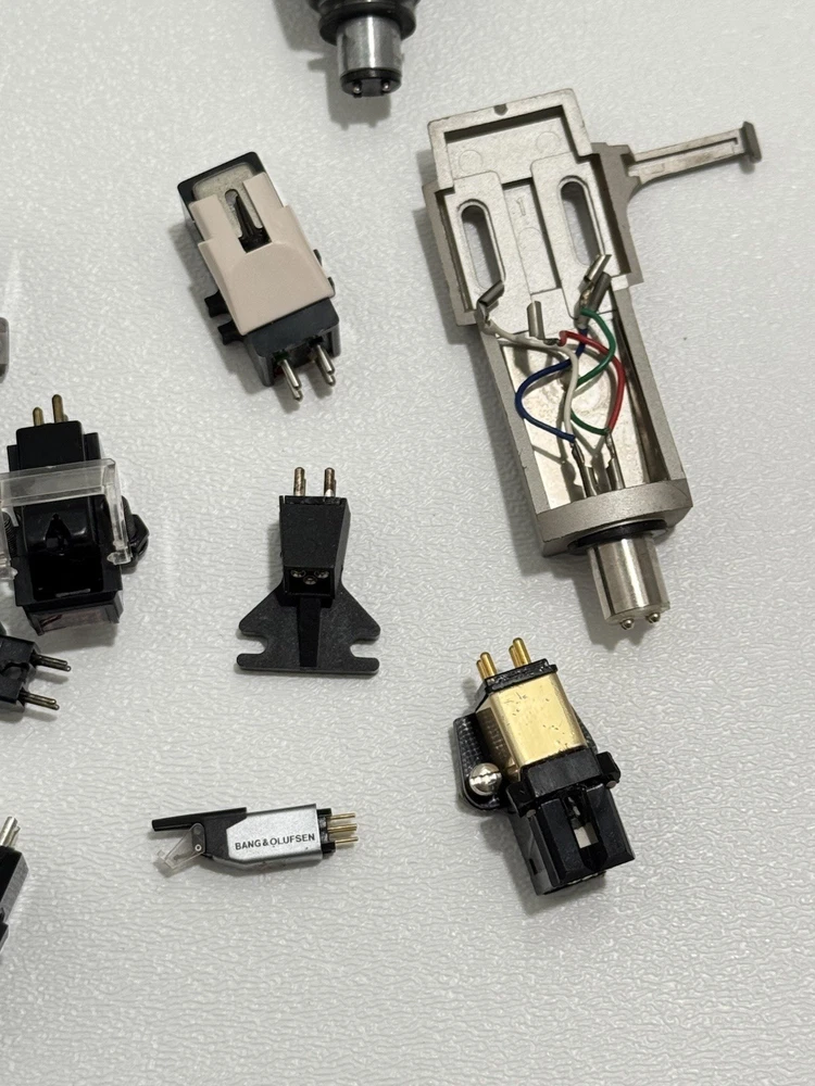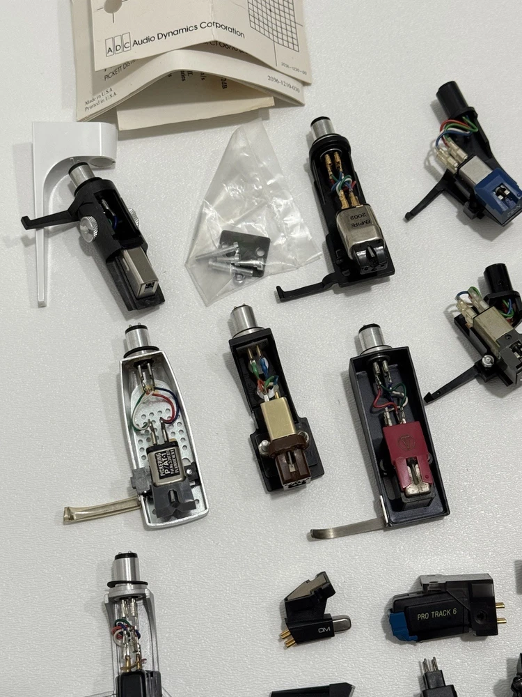 Turntable Cartridges Parts Lot Technics Shure Pioneer Stanton Bang Olufsen MMC 4 That parts are in used condition, and are untested. Everything is being sold as-is. Bang Olufsen MMC4 Pioneer shellhead Pioneer 5MC Yamaha shellhead W/ CG-7700 (broken stylus) Empire 2002 ADC Integra Pickering P/ AT-1 Stanton cartridge W/ EE 600 (broken stylus) Ortofon Digitrac 100 / 7 Audio-Technica At12XE Shure Pro Track 6 Realistic R25 EDT Azden YM 10E Shure M75ECS Stanton D70E Empire 380