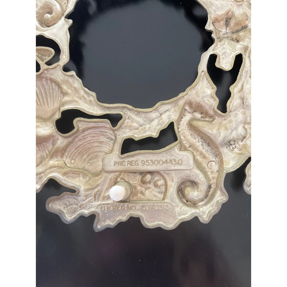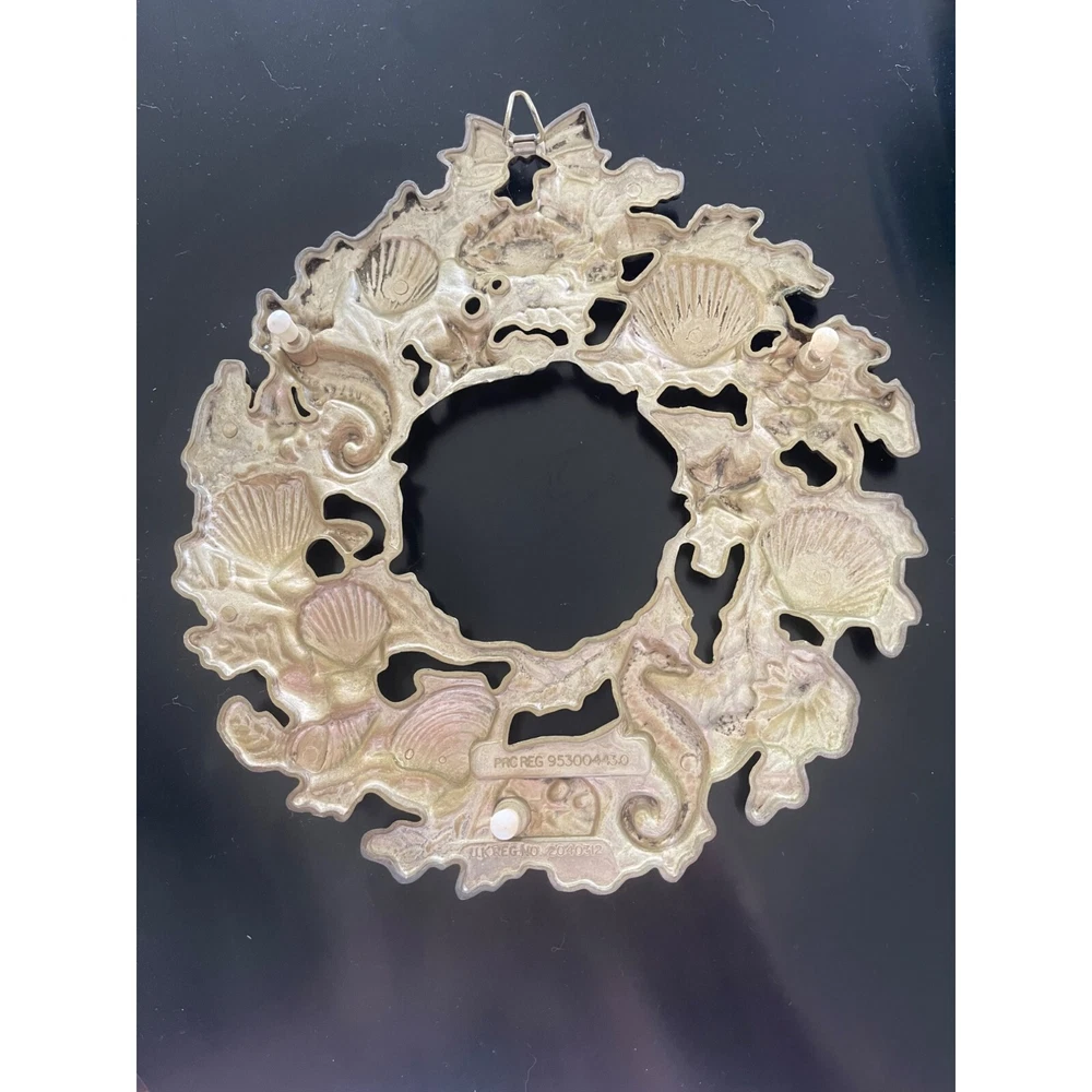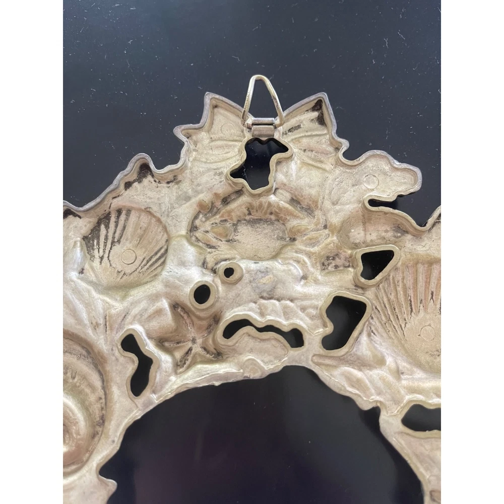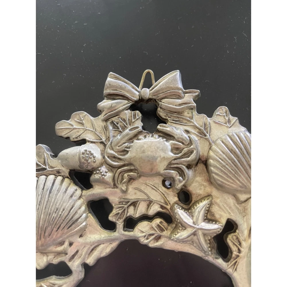 Vintage silver sealife wreath trivet or wall hanger with hanger. This striking trivet is decorated with all types of marine life and complements many varied decors. 9 x 9 1/4 inch Features: • Sea life, trivet, Wall hanger Size: 9 x 9 1/4 inch Condition: Pre-Owned Good Very good condition.