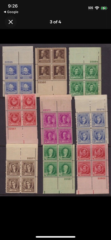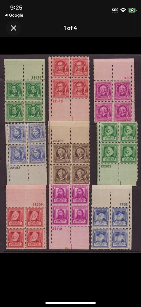 U.S. 859-893 set 35 Famous American Plate Blocks Mint, O.G., NH