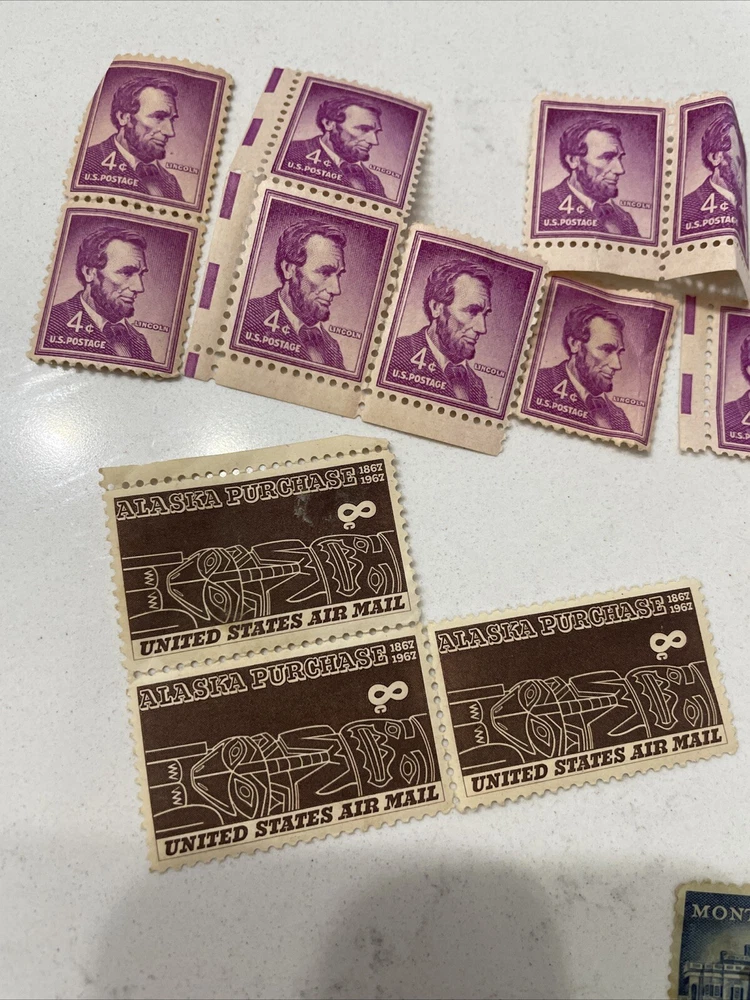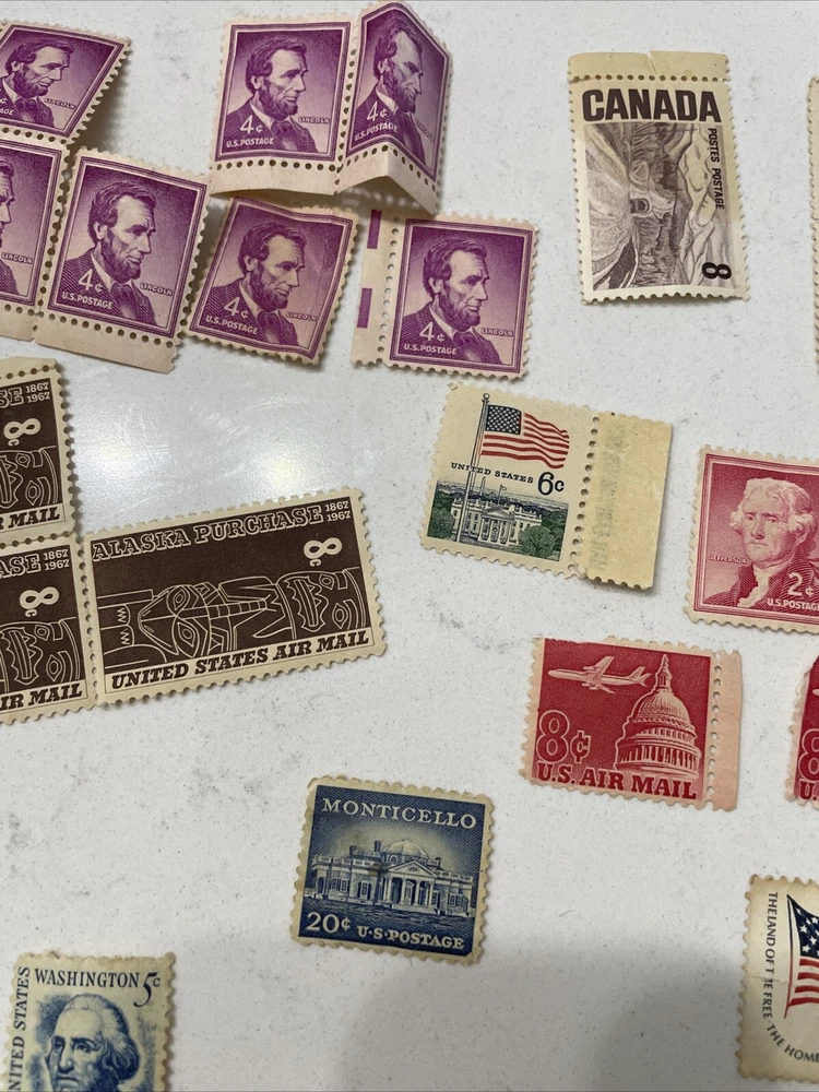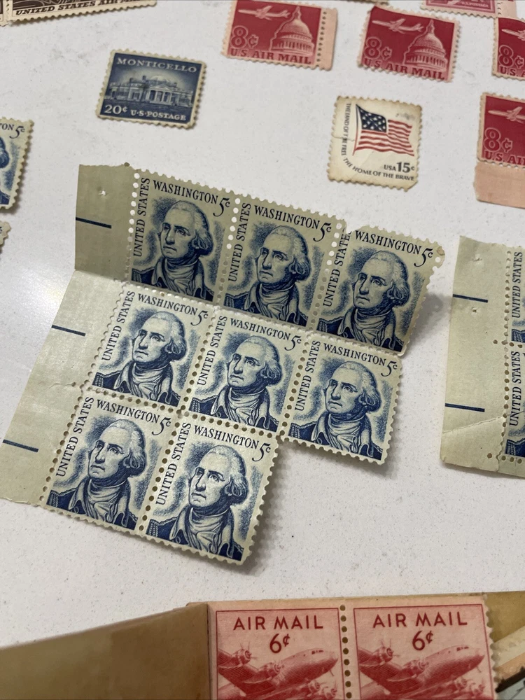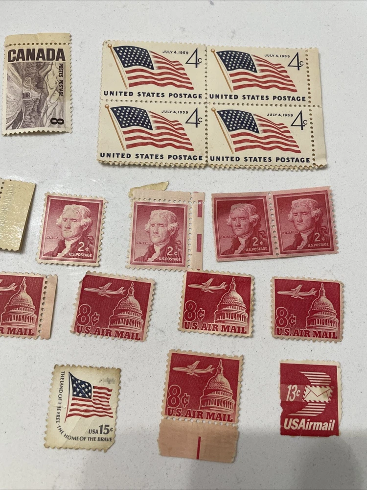 This lot of vintage US Air Mail postal stamps includes a collection of 6 cent stamps from the years 1949. These stamps are lightly hinged and come in a red color, with a topic of aviation. They are ungraded and uncertified, making them a unique addition to any stamp collection. The place of origin for these stamps is the United States, and they are perfect for collectors or enthusiasts of historical items. Add this collection of stamps to your own collection today!