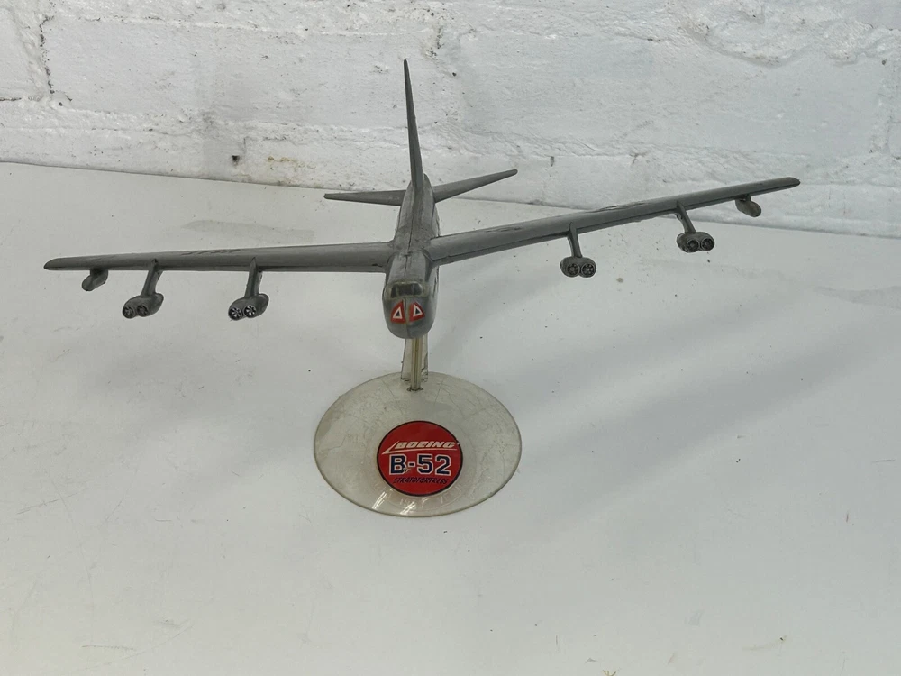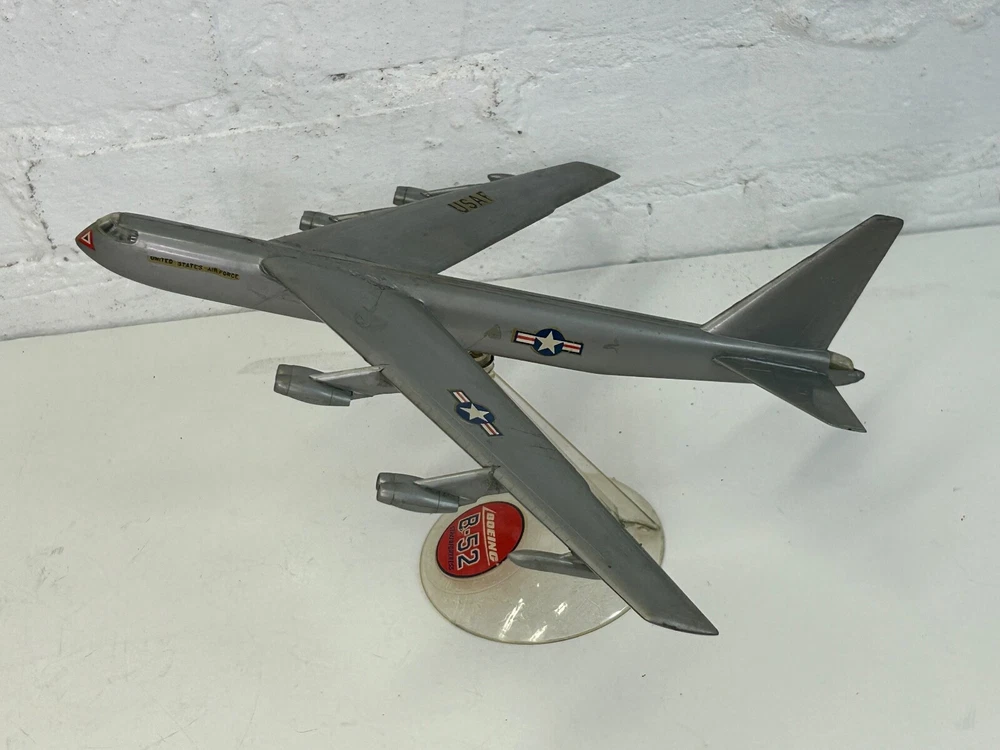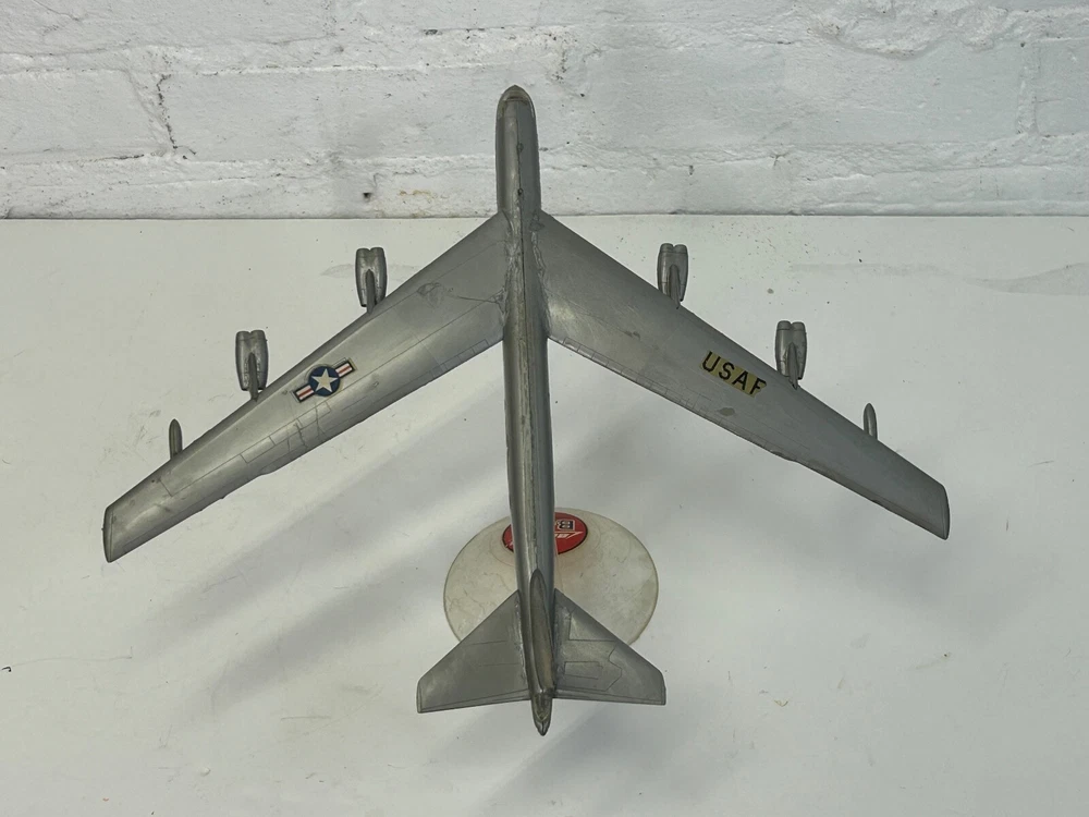 Vintage USAF Boeing Stratofortress Bomber Plastic Model Aircraft Display. It measures 10.5 inches long with a 12.5 inch wingspan. Made of plastic, has some decal/paint loss and crudely made, but still displays good. (TR1)