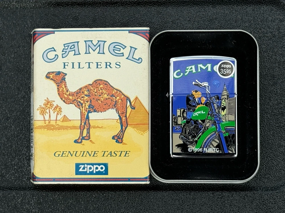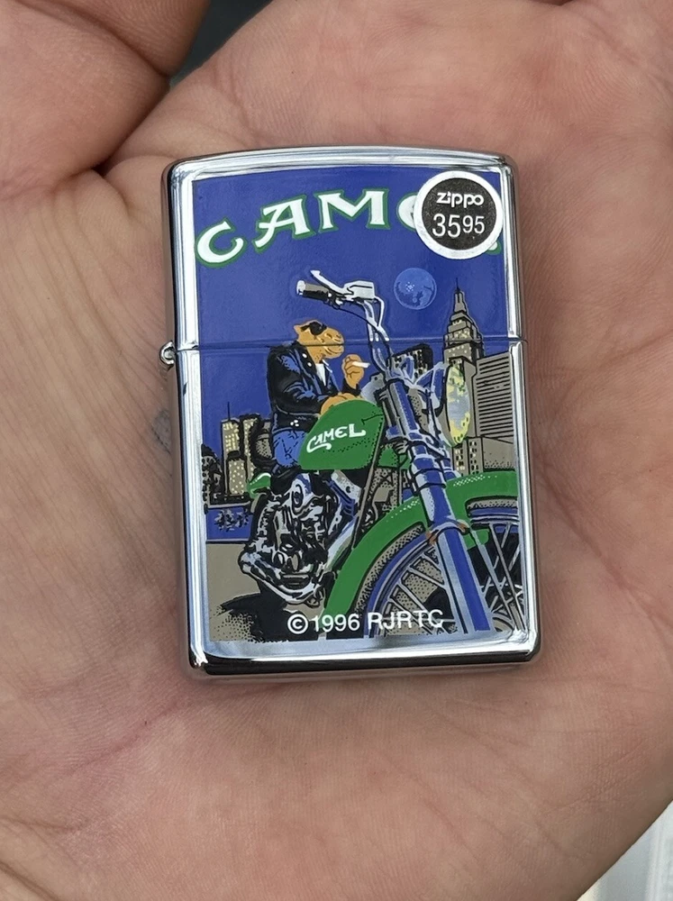 Vintage Unfired and Unused Joe Camel on Motorcycle Zippo Cigarette Lighter. See my other lighters and combine shipping. Photos tell the story.