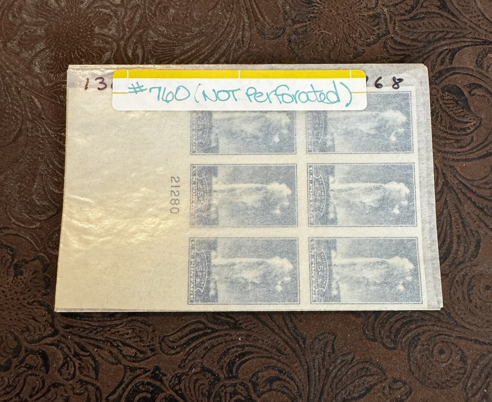 📫 VINTAGE PLATE BLOCKS * No. 760 * Unused * not perforated These stamps were from a collectors collection (ESTATE). What you see is what you get please see pictures for items condition, and description. As is only I do not accept returns Thank you and happy bidding and buying lil Debbie
