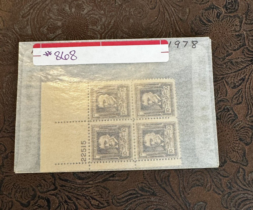 📫 VINTAGE PLATE BLOCKS * No. 868 * Unused * These stamps were from a collectors collection (ESTATE). What you see is what you get please see pictures for items condition, and description. As is only I do not accept returns Thank you and happy bidding and buying lil Debbie