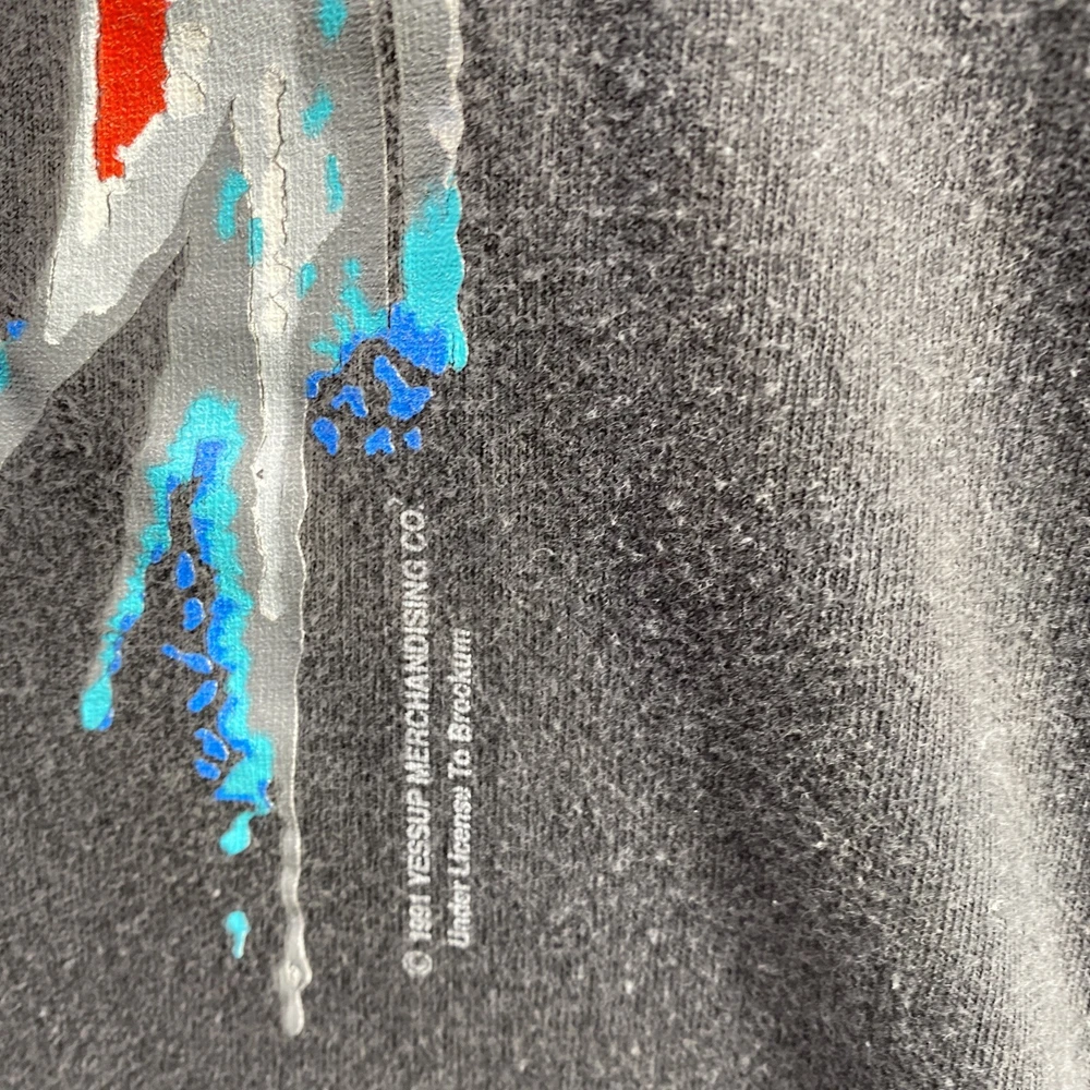 Please see pictures for noted condition and measurements Flaw on Graphic Fade on Black