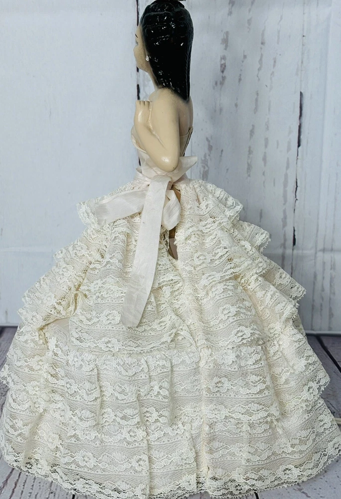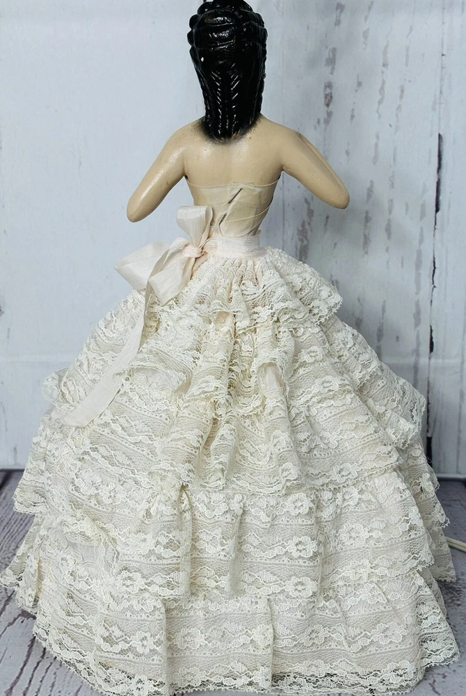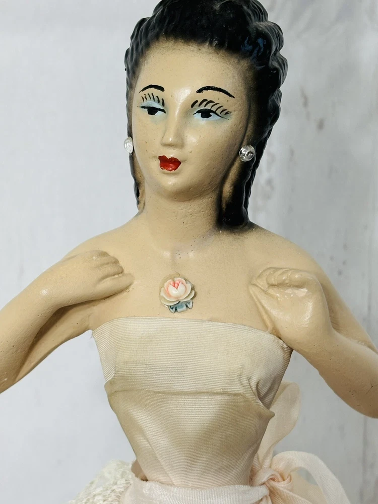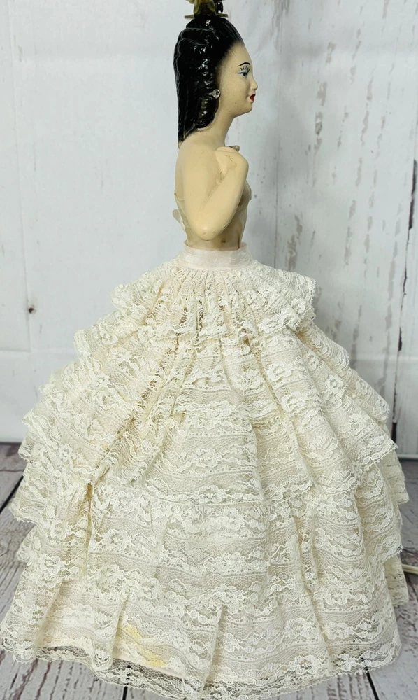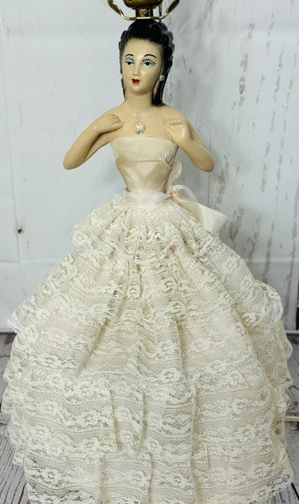 Ladies dress has a few spots of discoloration, but in great condition for its age. Lamp shade is not the original shade. PLEASE READ: Pink light bulb will be sent with the lamp, but is not guaranteed that it will function when it arrives. Old filaments are very fragile and can break easily during shipping. Add a touch of vintage charm to your home decor with this beautiful CHALKWARE BOUDOIR LADY LAMP. This lamp features a pink color and a shaded design that will complement any room. The lamp is corded and has a knob control style, making it easy to use. This original lamp was manufactured in the 1940s and has a height of 23 inches with the lamp shade included. The lamp is made of chalkware material and has a pink color. It is a perfect addition for teens, unisex adults, and girls. The lamp's sensor type is light and it is a vintage piece from the 1940s. This lamp is a must-have for collectors and enthusiasts alike.