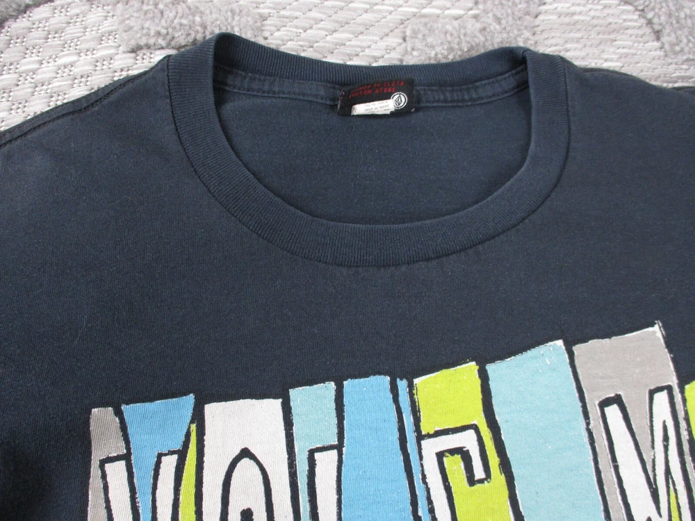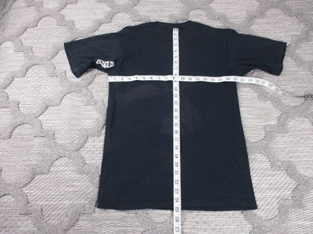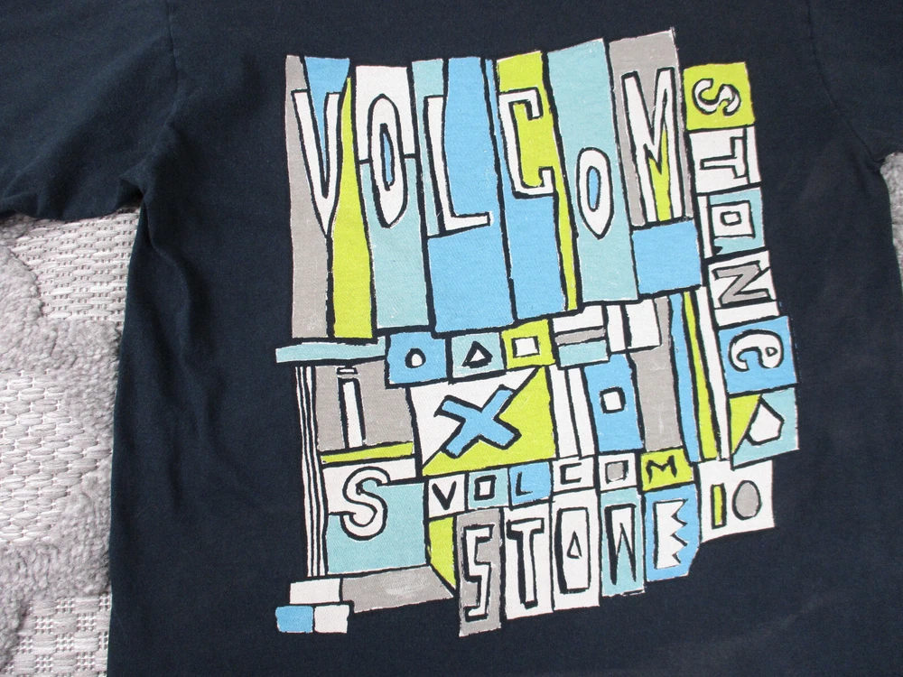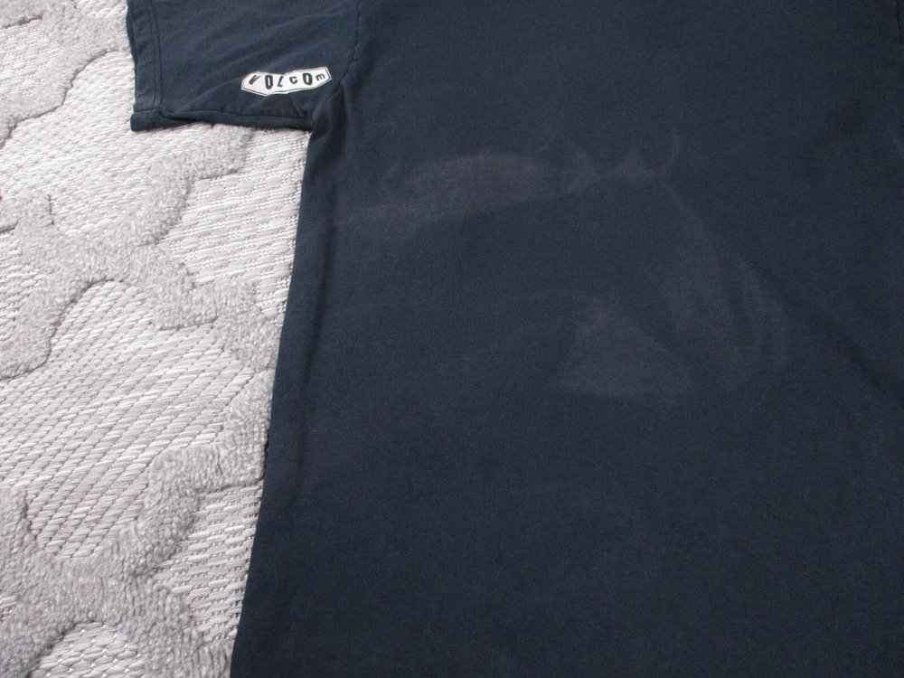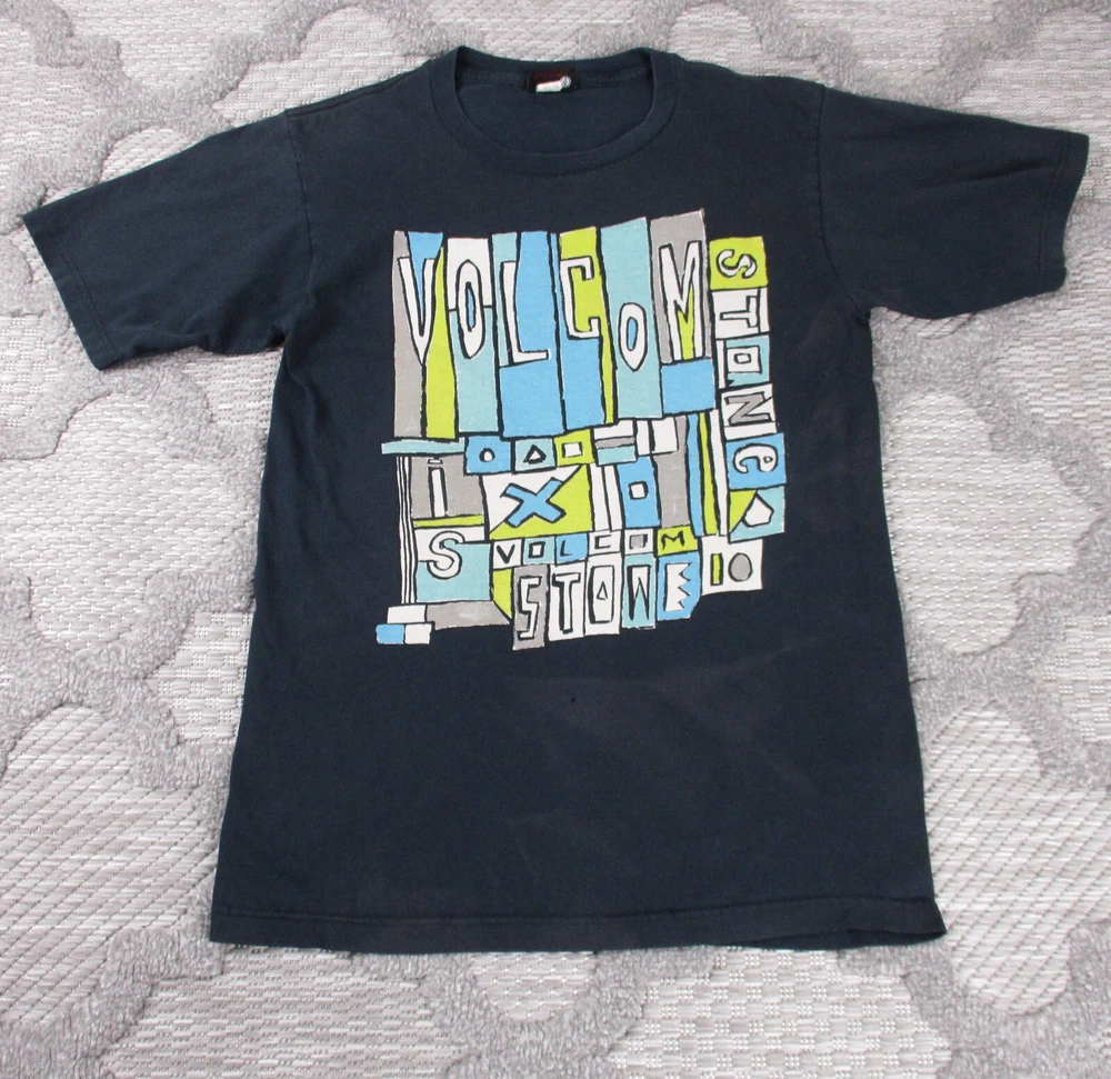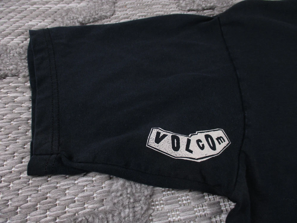 Vintage Volcom Shirt Mens Small Black Logo Abstract Graffiti Print Short Sleeve Small hole on bottom front (photo 4). Some discoloration streaks on a few spots as well, shown in photos. Otherwise, shirt is in good clean condition. Please see photos for details and measurements. Compare measurements to your favorite shirt to ensure proper fit.