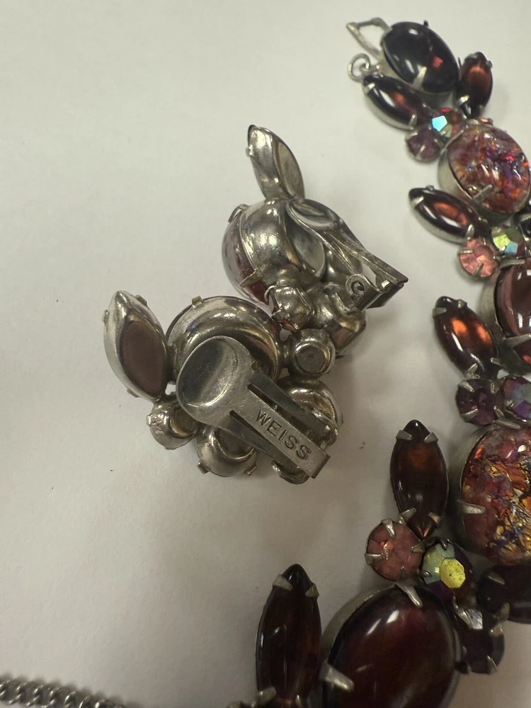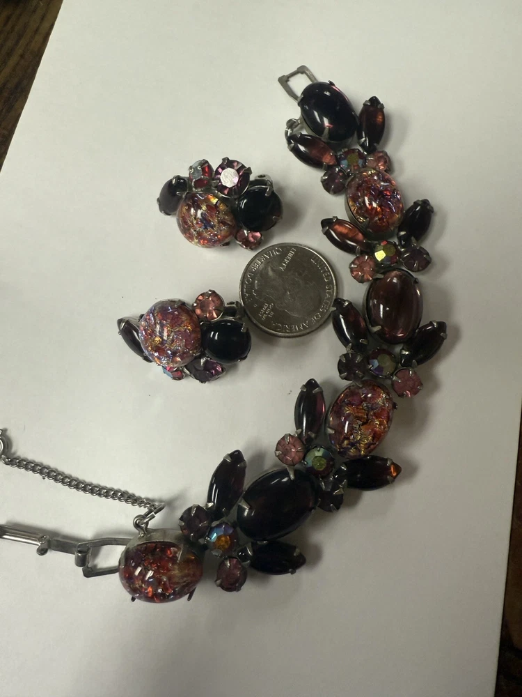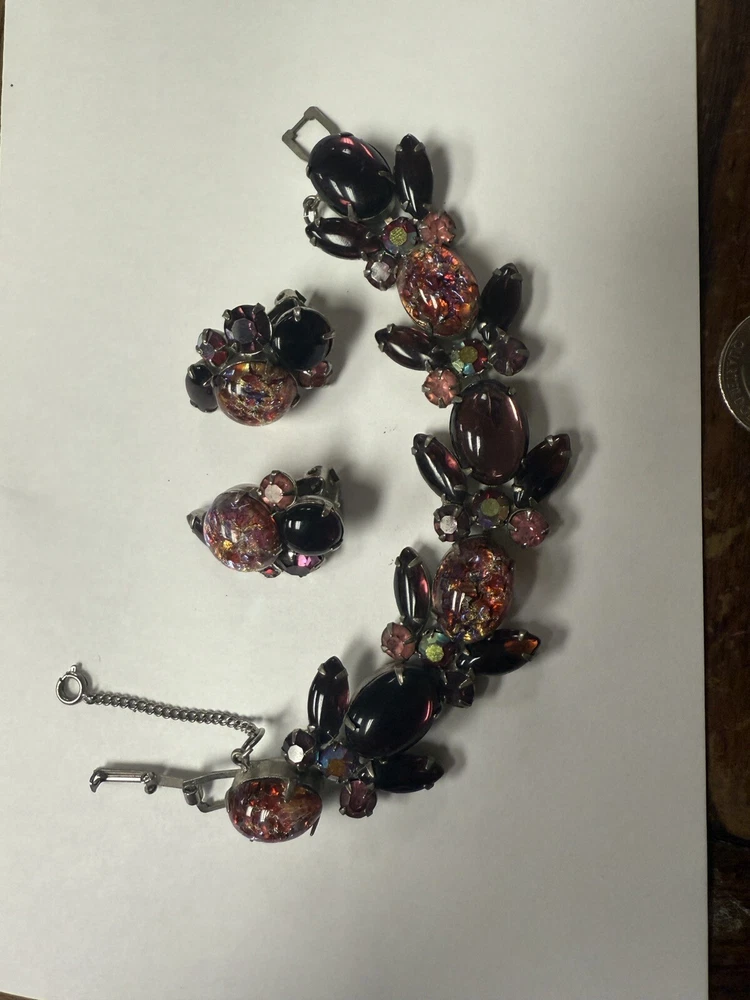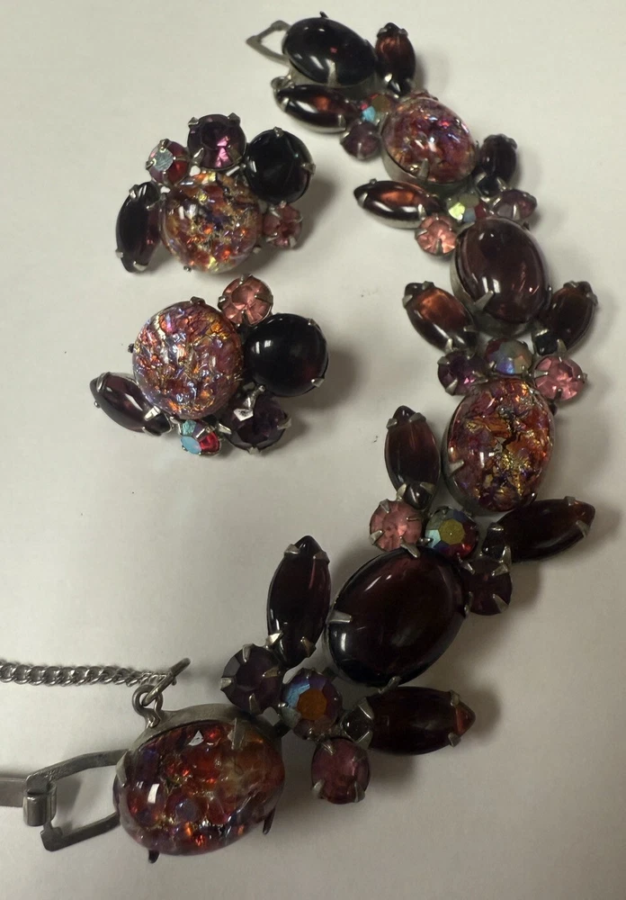 Vintage WEISS Faux Fire Opal Cabochon Bracelet And Clip On Earrings. Condition is Pre-owned. Shipped with USPS Ground Advantage.