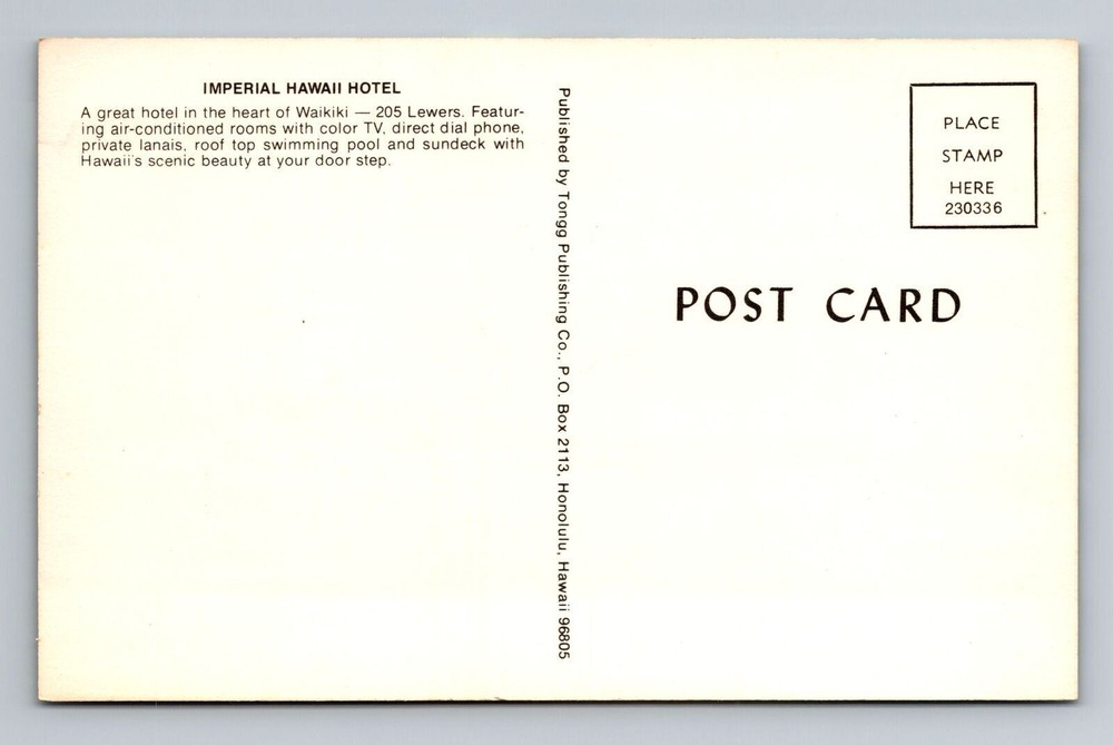 Vintage Waikiki HI Imperial Hawaii Hotel Advertising Postcard