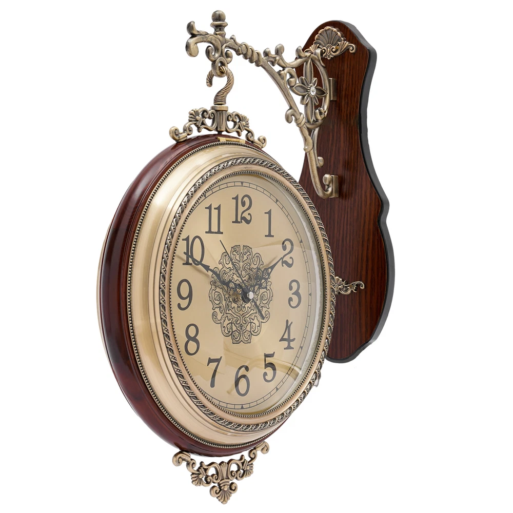 Specification Material: Wood, Alloy, Glass Color: Brown, Golden Style: Vintage Process: Spray Paint, Electroplated Shape: Round Indoor/Outdoor Usage: Indoor Assembly Required: Yes Mounting Type: Wall-Mounted Battery: 2*AA Carbon-zinc Battery(Not Included) Gross Weight: 2.4 kg/ 5.29 lbs Net Weight: 2.1 kg/ 4.63 lbs Package Size: 49*42*9 cm/19.29*16.54*3.54 in Product Size(H*W): 46*37cm/ 18.1*14.6in Wall Hanging Size: 27*8cm/ 10.6*3.1in Dial Diameter: 24cm/ 9.4in Clock Diameter: 30.5cm/12in Package Included 1*Double-sided Wall Clock All Accessories for Installation Vintage Wall Clock Quartz Clock Silent Non-Ticking Clock Wooden Double Sided NEW Description Our double-sided wall clock not only tells the time accurately, but its vintage style looks great in any room. Its silent movement ensures a quiet environment while you rest and work. The double-sided dial design gives you multiple angles suitable for viewing. It comes with a full range of accessories for effortless installation. It will surely be your ideal choice. Key Features Sturdy and Durable: The product is mainly composed of painted wood and electroplated alloy with high hardness, high wear resistance, anti-corrosion and anti-rust properties. Easy to Read: The large 12-inch diameter dial, large black numerals, and large hands make it easy to read, and the double-sided and 360-degree rotatable designs make it easy to see the time from different angles. Quiet and Accurate: This item is equipped with a silent movement, which provides you with a quiet sleeping and working environment and ensures the smooth running of the clock hands. Space Saving: Using the wall-mounted installation can effectively utilize the free space on the wall and beautify the home environment at the same time. Easy Installation: The simple structure of the product and the complete set of mounting parts make it possible for even a novice to complete the installation quickly and accurately. Easy to Clean: Thanks to the painted and electroplated smooth surface and simple structure, you can easily wipe off the dirt on it with a soft cloth. Protective Package: To prevent the product from being damaged during transportation, we packed it with foam to protect your products to the maximum extent possible. Customer Service: We aim to provide quality products and services. If you have problems, please feel free to contact us. We will reply and solve the problem for you as soon as possible. Details Enclosed Battery Compartment: The enclosed design protects the battery compartment from water splashing and dust accumulation, making it safer to use and easier to clean. Smooth Edge: The rounded and smooth edges not only add to the aesthetics of the product but also improve the safety of use. Application It is suitable for use as a wall clock and wall decoration in bedrooms, dining rooms, living rooms, entrances, offices, hotels, classrooms, cafes, meeting rooms, and so on. Specification Material: Wood, Alloy, Glass Color: Brown, Golden Style: Vintage Process: Spray Paint, Electroplated Shape: Round Indoor/Outdoor Usage: Indoor Assembly Required: Yes Mounting Type: Wall-Mounted Battery: 2*AA Carbon-zinc Battery(Not Included) Gross Weight: 2.4 kg/ 5.29 lbs Net Weight: 2.1 kg/ 4.63 lbs Package Size: 49*42*9 cm/19.29*16.54*3.54 in Product Size(H*W): 46*37cm/ 18.1*14.6in Wall Hanging Size: 27*8cm/ 10.6*3.1in Dial Diameter: 24cm/ 9.4in Clock Diameter: 30.5cm/12in Package Included 1*Double-sided Wall Clock All Accessories for Installation Notes Please allow the slight color difference caused by the shooting light and the 1-3 cm error due to manual measurement, and make sure you do not mind before ordering. Payment Delivery details Terms of sales About us Contact us Payment We accept ebay payment 。 Fees such as import duties, taxes are not included in the item price or shipping costs. These charges are the buyer's responsibility. Delivery details Shipping: 2-9 working days to: USA Terms of sales We maintain high standards of excellence and strive for hundred percent customer satisfaction. Feedback is very important to us. We hope that you contact us immediately before you give neutral or negative feedback, so that we can address your concerns. It is impossible to address issues if we do not know about them! About us Your satis faction is our ultimate goal. We work hard to earn your trust and future business. Our certified technicians have tested each item before shipping. The unit comes with 1 year limited warranty on all manufacturing defects. a) If you receive a defective item, you may return it or ask for a discount. Please contact us within 14 days after you receive the package. b) What you returned must be intact and in its original packaging as re? u. Customer is responsible for shipping costs of the returned item. c) We will cover the cost of shipping back t with the shipping rate indicated in the registration page. We will send you a new unit or refund the full payment you paid. Thank you. Contact us Business Hour Business Hour: Monday To Friday: 8:30 AM to 5:00 PM (Beijing China time) Due to time zones, our reply to your questions may not be immediately. But within above working time, we will reply your email within 24 hours. If it's non-workdays, please kindly be patient and wait till Monday. Please contact us with ebay message. Please feel free to contact us if you have any questions. Monday To Friday: 8:30 AM to 5:00 PM (Beijing China time) Due to time zones, our reply to your questions may not be immediately. But within above working time, we will reply your email within 24 hours. If it's non-workdays, please kindly be patient and wait till Monday. Please contact us with ebay message. Please feel free to contact us if you have any questions. On Feb 13, 2025 at 20:35:47 PST, seller added the following information: