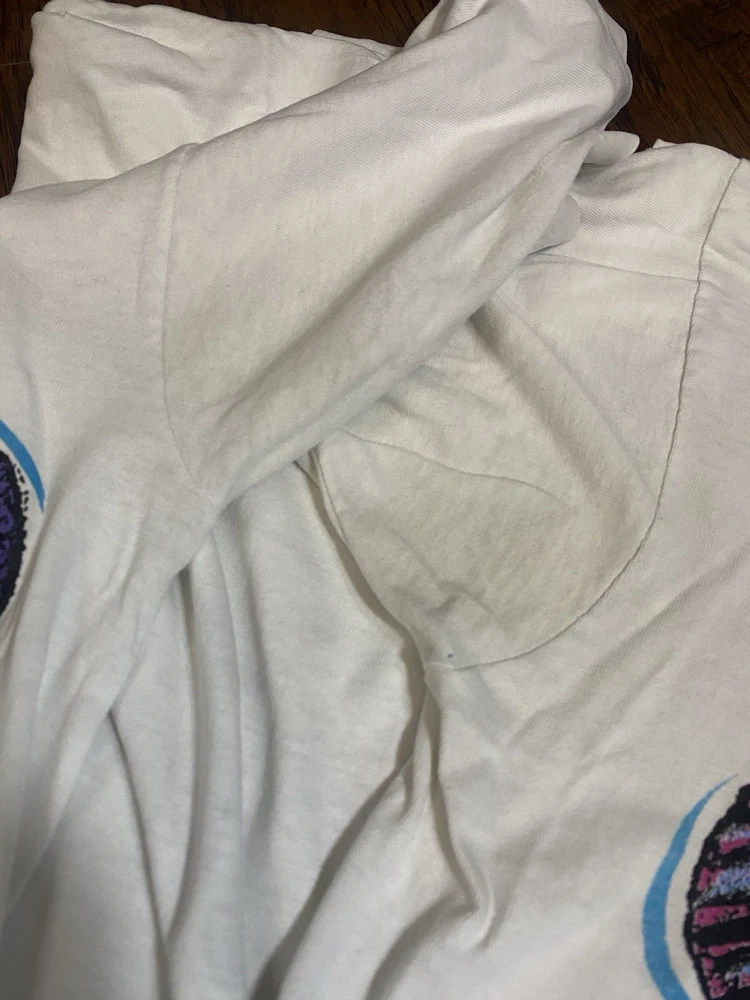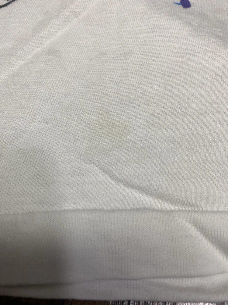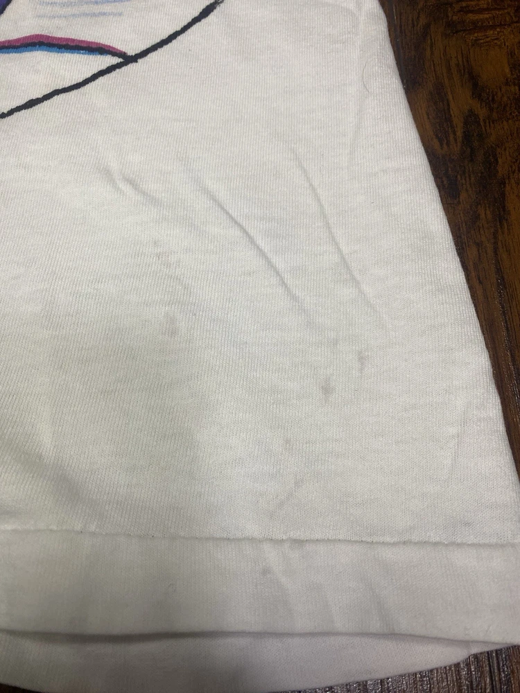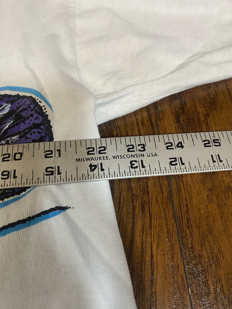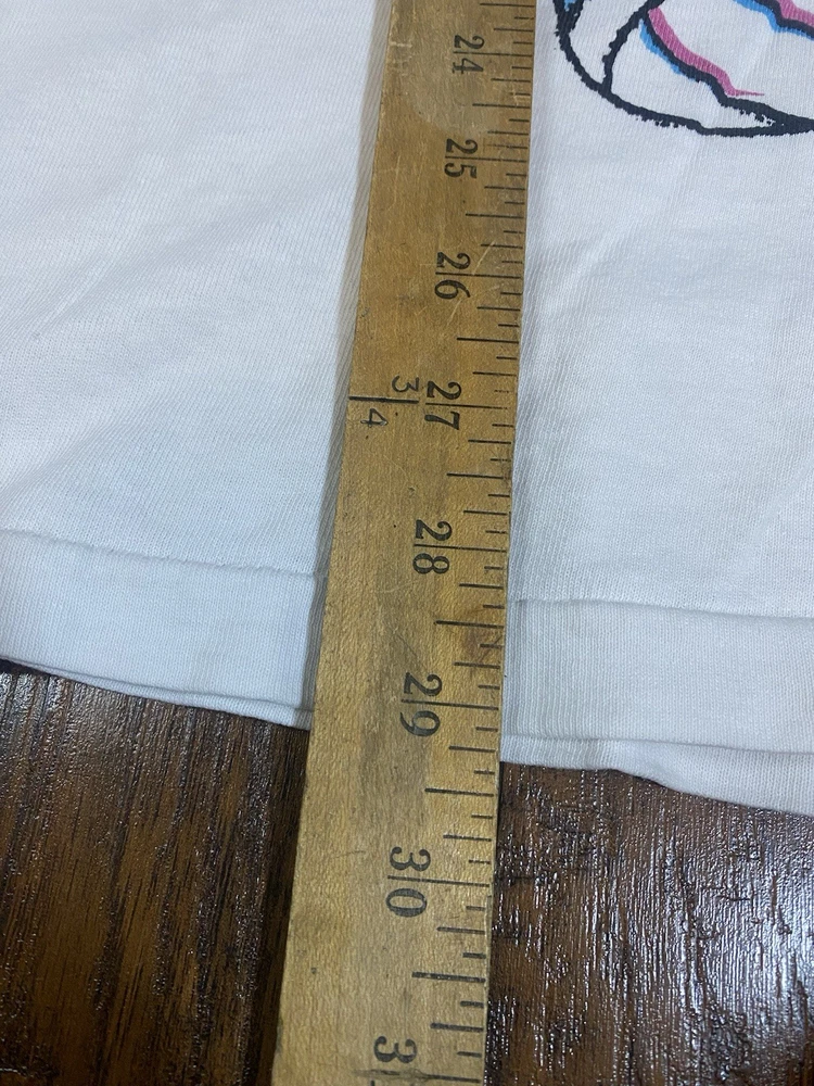 Big print Disney. Tag says one size. Does have some signs of wear which is shown in pictures along with measurements. Packaged safe and shipped quick.