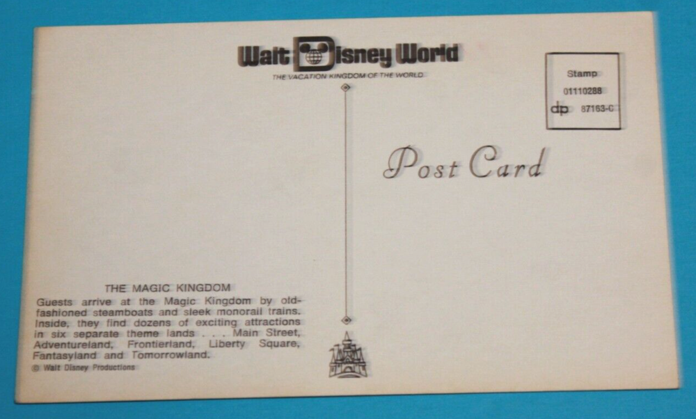 Vintage Souvenir Travel Postcard Walt Disney World Magic Kingdom Aerial . Any photos used are of the item that you will be receiving, they are not stock photos. Will combine shipping costs for multiple purchases. Shipments to the Continental U.S. only. Sorry, No APO or FPO. Please pay promptly. Please visit our Ebay store for more great items. Combined shipping is not automatic. If you're not sure how to do it, Please contact us and we'll be happy to help.