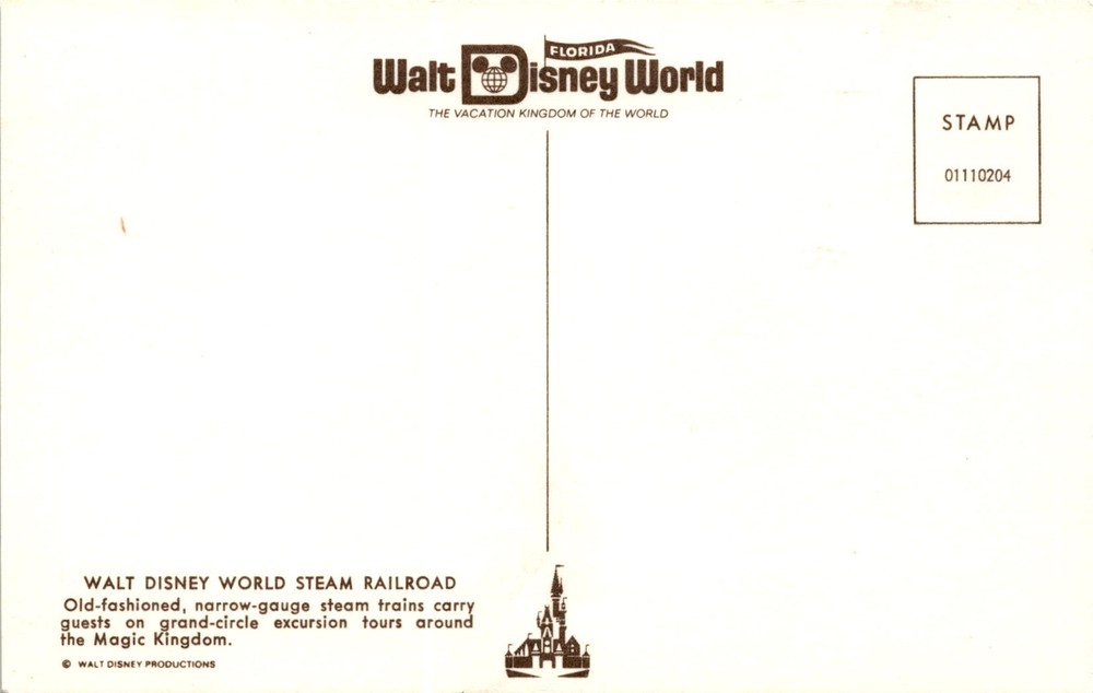MAKE AN OFFER. THE MORE YOU BUY THE BETTER DEAL I WILL ACCEPT The postcard features an image of the Walt Disney World Steam Railroad in Florida, known as The Vacation Kingdom of the World. This iconic attraction offers guests a nostalgic experience aboard old-fashioned, narrow-gauge steam trains that take them on grand-circle excursion tours around the Magic Kingdom.