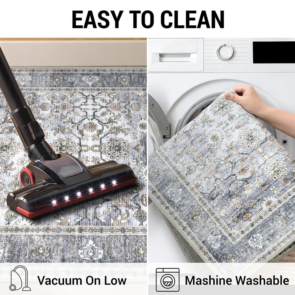 Introducing our versatile and stylish Entry Rug, a perfect addition to any home seeking functionality and aesthetic appeal. This entryway rug is meticulously crafted to cater to a variety of spaces, including bathrooms, kitchens, entryways, and living areas. Our area rugs offer a pop of color that can invigorate any dull space, while the rugs for kitchen floor ensure both style and practicality. This washable area rug is designed with convenience in mind. Featuring a non-slip backing, The non-slip rug backing prevents accidental slips One of the standout features of this entry way rug is its waterproof quality. This makes it an excellent choice for indoor areas prone to moisture, such as bathrooms and kitchens. The waterproof rugs for indoor use protect your floors from water damage, while the throw rug design adds a touch of coziness to your space. Designed to be both functional and decorative, this area rug seamlessly blends into various home decors. Whether you're looking for a small rug for your dorm room, or a chic entryway rug Our entry rugs are available in a variety of styles and colors, including the popular blue kitchen rugs and blue bathroom rugs. The versatility of this product extends to its use as a door mat or a front door mat, providing a welcoming touch to your home. For those who prefer a boho aesthetic, our boho rug options are equally captivating, offering unique patterns that enhance your interior design. Whether you need a durablity laundry room rug or a stylish throw rug for your living room, our washable entry rug is the ideal choice. The high-quality materials ensure longevity, while the non-slip features provide peace of mind. In summary, our Blue Entry Rug is a multifunctional and stylish solution for any home. Its washable, non-slip, and waterproof characteristics make it a practical choice, while the variety of colors and styles ensure it complements any decor. Transform your space with this versatile area rug Key Features: Size: 2.6x16 Feet (31.2x192 Inches), Thickness: 0.24 in., Color: Grey Blue vintage fade with gold patterns. Color Notice: Slight color variations may occur between batches or due to lighting, which can sometimes cause a bluish tone Vintage Design: vintage-inspired runner rug features artfully distressed prints in muted tones, adding timeless elegance to any space. This low-pile polyester rug offers soft warmth & minimal shedding - elegant yet easy-care decor. Secure Non-Slip Design: Non-slip runner rug with skid-proof backing stays securely in place, even in high-traffic areas. Low-pile, shed-resistant surface is perfect for homes with kids/pets. For best grip, keep underside dry. Thin & Sturdy: This 0.24'' rug glides effortlessly under doors with 0.3"+ gaps, blending form and function. Crafted from dense, fade-defying fibers, its low-profile design resists crushing and wear while maintaining plush comfort underfoot. The ultra-thin build eliminates door snags, ensures easy cleaning, and slips seamlessly into high-traffic spaces—perfect for hallways, kitchens, and entryways. Easy-Care Rug: A quick sweep or wipe for daily cleaning. when vacuuming, use a low-speed setting or a robotic vacuum to prevent shifting due to the soft backing. For deep cleaning, machine wash in cold water and avoid bleach to maintain colors. Foldable Runner Rug: To remove creases, roll in the opposite direction or press flat. For best results: 1. Iron the back on low with a damp cloth; 2. Keep rolled in reverse for 2–3 days; 3. Use weights if needed.