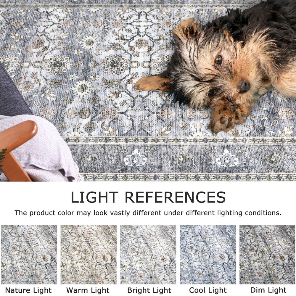 Introducing our versatile and stylish Entry Rug, a perfect addition to any home seeking functionality and aesthetic appeal. This entryway rug is meticulously crafted to cater to a variety of spaces, including bathrooms, kitchens, entryways, and living areas. Our area rugs offer a pop of color that can invigorate any dull space, while the rugs for kitchen floor ensure both style and practicality. This washable area rug is designed with convenience in mind. Featuring a non-slip backing, The non-slip rug backing prevents accidental slips One of the standout features of this entry way rug is its waterproof quality. This makes it an excellent choice for indoor areas prone to moisture, such as bathrooms and kitchens. The waterproof rugs for indoor use protect your floors from water damage, while the throw rug design adds a touch of coziness to your space. Designed to be both functional and decorative, this area rug seamlessly blends into various home decors. Whether you're looking for a small rug for your dorm room, or a chic entryway rug Our entry rugs are available in a variety of styles and colors, including the popular blue kitchen rugs and blue bathroom rugs. The versatility of this product extends to its use as a door mat or a front door mat, providing a welcoming touch to your home. For those who prefer a boho aesthetic, our boho rug options are equally captivating, offering unique patterns that enhance your interior design. Whether you need a durablity laundry room rug or a stylish throw rug for your living room, our washable entry rug is the ideal choice. The high-quality materials ensure longevity, while the non-slip features provide peace of mind. In summary, our Blue Entry Rug is a multifunctional and stylish solution for any home. Its washable, non-slip, and waterproof characteristics make it a practical choice, while the variety of colors and styles ensure it complements any decor. Transform your space with this versatile area rug Key Features: Size: 2.6x16 Feet (31.2x192 Inches), Thickness: 0.24 in., Color: Grey Blue vintage fade with gold patterns. Color Notice: Slight color variations may occur between batches or due to lighting, which can sometimes cause a bluish tone Vintage Design: vintage-inspired runner rug features artfully distressed prints in muted tones, adding timeless elegance to any space. This low-pile polyester rug offers soft warmth & minimal shedding - elegant yet easy-care decor. Secure Non-Slip Design: Non-slip runner rug with skid-proof backing stays securely in place, even in high-traffic areas. Low-pile, shed-resistant surface is perfect for homes with kids/pets. For best grip, keep underside dry. Thin & Sturdy: This 0.24'' rug glides effortlessly under doors with 0.3"+ gaps, blending form and function. Crafted from dense, fade-defying fibers, its low-profile design resists crushing and wear while maintaining plush comfort underfoot. The ultra-thin build eliminates door snags, ensures easy cleaning, and slips seamlessly into high-traffic spaces—perfect for hallways, kitchens, and entryways. Easy-Care Rug: A quick sweep or wipe for daily cleaning. when vacuuming, use a low-speed setting or a robotic vacuum to prevent shifting due to the soft backing. For deep cleaning, machine wash in cold water and avoid bleach to maintain colors. Foldable Runner Rug: To remove creases, roll in the opposite direction or press flat. For best results: 1. Iron the back on low with a damp cloth; 2. Keep rolled in reverse for 2–3 days; 3. Use weights if needed.