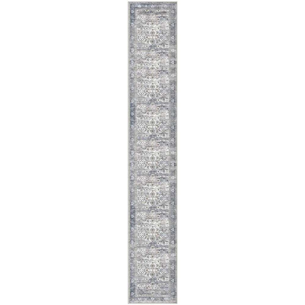 Introducing our versatile and stylish Entry Rug, a perfect addition to any home seeking functionality and aesthetic appeal. This entryway rug is meticulously crafted to cater to a variety of spaces, including bathrooms, kitchens, entryways, and living areas. Our area rugs offer a pop of color that can invigorate any dull space, while the rugs for kitchen floor ensure both style and practicality. This washable area rug is designed with convenience in mind. Featuring a non-slip backing, The non-slip rug backing prevents accidental slips One of the standout features of this entry way rug is its waterproof quality. This makes it an excellent choice for indoor areas prone to moisture, such as bathrooms and kitchens. The waterproof rugs for indoor use protect your floors from water damage, while the throw rug design adds a touch of coziness to your space. Designed to be both functional and decorative, this area rug seamlessly blends into various home decors. Whether you're looking for a small rug for your dorm room, or a chic entryway rug Our entry rugs are available in a variety of styles and colors, including the popular blue kitchen rugs and blue bathroom rugs. The versatility of this product extends to its use as a door mat or a front door mat, providing a welcoming touch to your home. For those who prefer a boho aesthetic, our boho rug options are equally captivating, offering unique patterns that enhance your interior design. Whether you need a durablity laundry room rug or a stylish throw rug for your living room, our washable entry rug is the ideal choice. The high-quality materials ensure longevity, while the non-slip features provide peace of mind. In summary, our Blue Entry Rug is a multifunctional and stylish solution for any home. Its washable, non-slip, and waterproof characteristics make it a practical choice, while the variety of colors and styles ensure it complements any decor. Transform your space with this versatile area rug Key Features: Size: 2.6x16 Feet (31.2x192 Inches), Thickness: 0.24 in., Color: Grey Blue vintage fade with gold patterns. Color Notice: Slight color variations may occur between batches or due to lighting, which can sometimes cause a bluish tone Vintage Design: vintage-inspired runner rug features artfully distressed prints in muted tones, adding timeless elegance to any space. This low-pile polyester rug offers soft warmth & minimal shedding - elegant yet easy-care decor. Secure Non-Slip Design: Non-slip runner rug with skid-proof backing stays securely in place, even in high-traffic areas. Low-pile, shed-resistant surface is perfect for homes with kids/pets. For best grip, keep underside dry. Thin & Sturdy: This 0.24'' rug glides effortlessly under doors with 0.3"+ gaps, blending form and function. Crafted from dense, fade-defying fibers, its low-profile design resists crushing and wear while maintaining plush comfort underfoot. The ultra-thin build eliminates door snags, ensures easy cleaning, and slips seamlessly into high-traffic spaces—perfect for hallways, kitchens, and entryways. Easy-Care Rug: A quick sweep or wipe for daily cleaning. when vacuuming, use a low-speed setting or a robotic vacuum to prevent shifting due to the soft backing. For deep cleaning, machine wash in cold water and avoid bleach to maintain colors. Foldable Runner Rug: To remove creases, roll in the opposite direction or press flat. For best results: 1. Iron the back on low with a damp cloth; 2. Keep rolled in reverse for 2–3 days; 3. Use weights if needed.