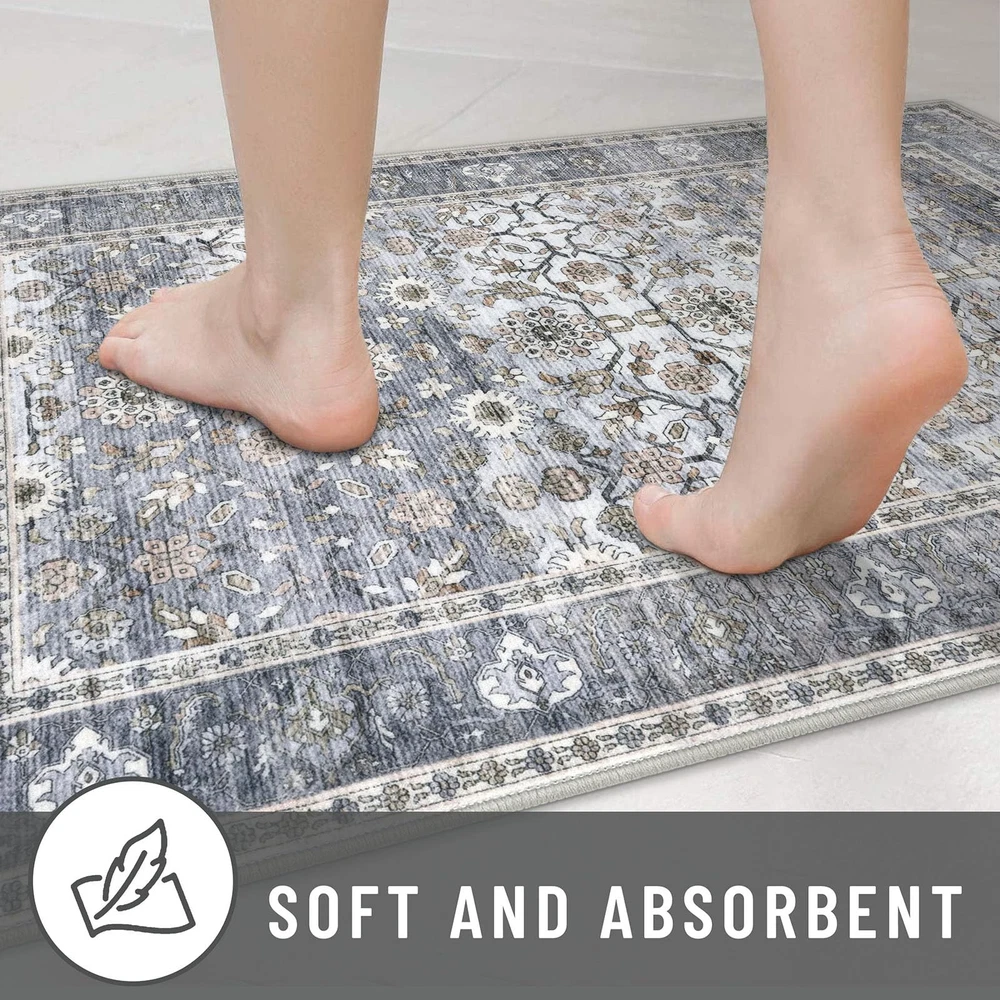 Introducing our versatile and stylish Entry Rug, a perfect addition to any home seeking functionality and aesthetic appeal. This entryway rug is meticulously crafted to cater to a variety of spaces, including bathrooms, kitchens, entryways, and living areas. Our area rugs offer a pop of color that can invigorate any dull space, while the rugs for kitchen floor ensure both style and practicality. This washable area rug is designed with convenience in mind. Featuring a non-slip backing, The non-slip rug backing prevents accidental slips One of the standout features of this entry way rug is its waterproof quality. This makes it an excellent choice for indoor areas prone to moisture, such as bathrooms and kitchens. The waterproof rugs for indoor use protect your floors from water damage, while the throw rug design adds a touch of coziness to your space. Designed to be both functional and decorative, this area rug seamlessly blends into various home decors. Whether you're looking for a small rug for your dorm room, or a chic entryway rug Our entry rugs are available in a variety of styles and colors, including the popular blue kitchen rugs and blue bathroom rugs. The versatility of this product extends to its use as a door mat or a front door mat, providing a welcoming touch to your home. For those who prefer a boho aesthetic, our boho rug options are equally captivating, offering unique patterns that enhance your interior design. Whether you need a durablity laundry room rug or a stylish throw rug for your living room, our washable entry rug is the ideal choice. The high-quality materials ensure longevity, while the non-slip features provide peace of mind. In summary, our Blue Entry Rug is a multifunctional and stylish solution for any home. Its washable, non-slip, and waterproof characteristics make it a practical choice, while the variety of colors and styles ensure it complements any decor. Transform your space with this versatile area rug Key Features: Size: 2.6x16 Feet (31.2x192 Inches), Thickness: 0.24 in., Color: Grey Blue vintage fade with gold patterns. Color Notice: Slight color variations may occur between batches or due to lighting, which can sometimes cause a bluish tone Vintage Design: vintage-inspired runner rug features artfully distressed prints in muted tones, adding timeless elegance to any space. This low-pile polyester rug offers soft warmth & minimal shedding - elegant yet easy-care decor. Secure Non-Slip Design: Non-slip runner rug with skid-proof backing stays securely in place, even in high-traffic areas. Low-pile, shed-resistant surface is perfect for homes with kids/pets. For best grip, keep underside dry. Thin & Sturdy: This 0.24'' rug glides effortlessly under doors with 0.3"+ gaps, blending form and function. Crafted from dense, fade-defying fibers, its low-profile design resists crushing and wear while maintaining plush comfort underfoot. The ultra-thin build eliminates door snags, ensures easy cleaning, and slips seamlessly into high-traffic spaces—perfect for hallways, kitchens, and entryways. Easy-Care Rug: A quick sweep or wipe for daily cleaning. when vacuuming, use a low-speed setting or a robotic vacuum to prevent shifting due to the soft backing. For deep cleaning, machine wash in cold water and avoid bleach to maintain colors. Foldable Runner Rug: To remove creases, roll in the opposite direction or press flat. For best results: 1. Iron the back on low with a damp cloth; 2. Keep rolled in reverse for 2–3 days; 3. Use weights if needed.