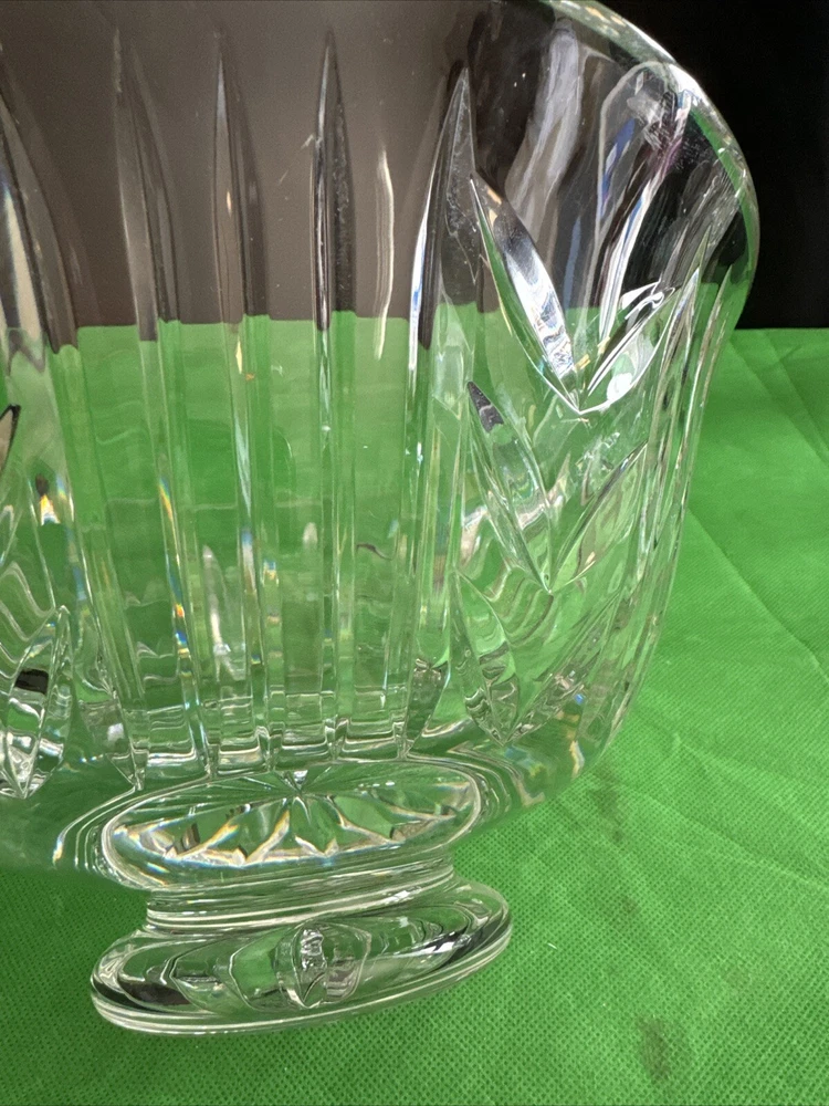 This is a vintage Waterford Crystal footed candy dish, measuring 10 inches in size. It is made of clear crystal and features an elegant design. Perfect for displaying and serving candies or other small treats, this piece would make a beautiful addition to any home decor.