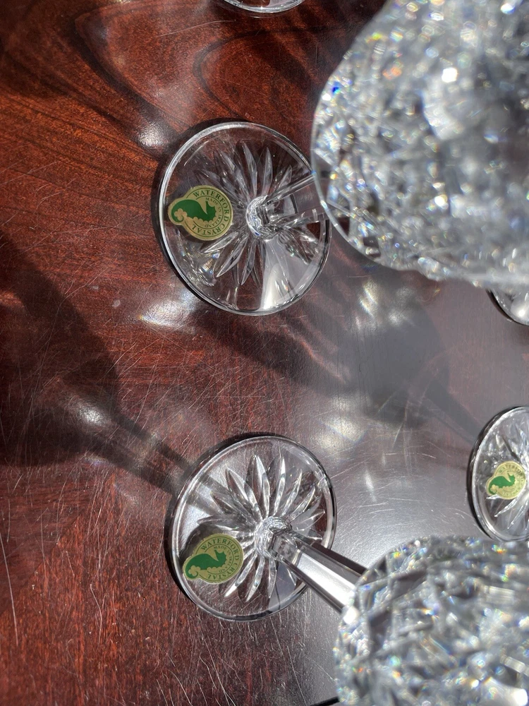 This are all in excellent condition. Please see the many photos I put to show that. All glasses are signed with the Waterford mark and sticker on it. No box. Shipping via USPS ground advantage. Shipping cost includes shipping handling and materials. Ships in the U.S.A. only. Happy to send more photos if needed. Please be attentive to the photos for any information on the condition of the items. The items are sold as is.