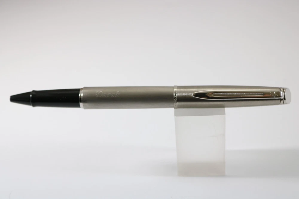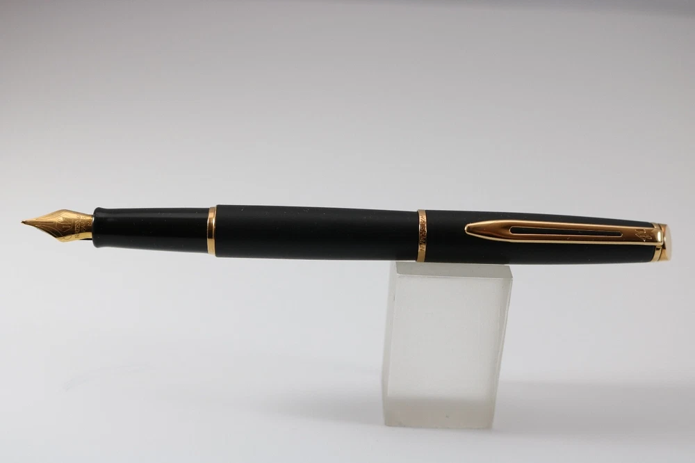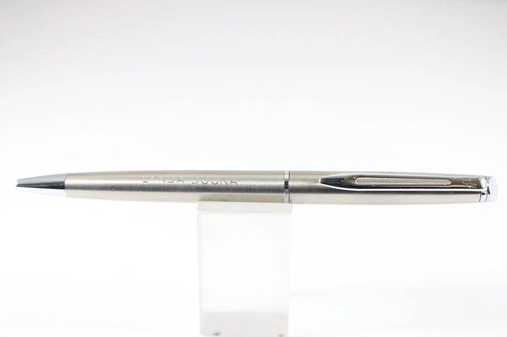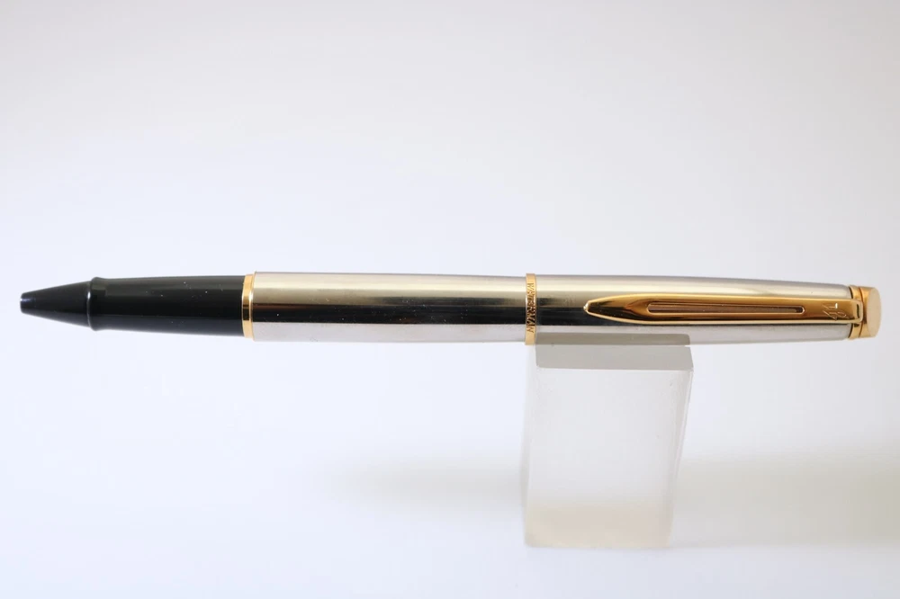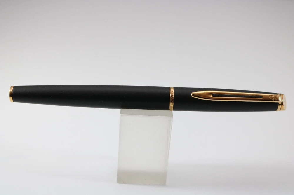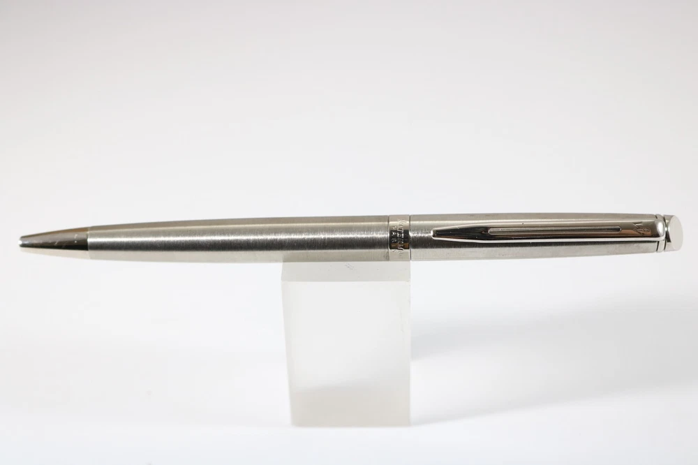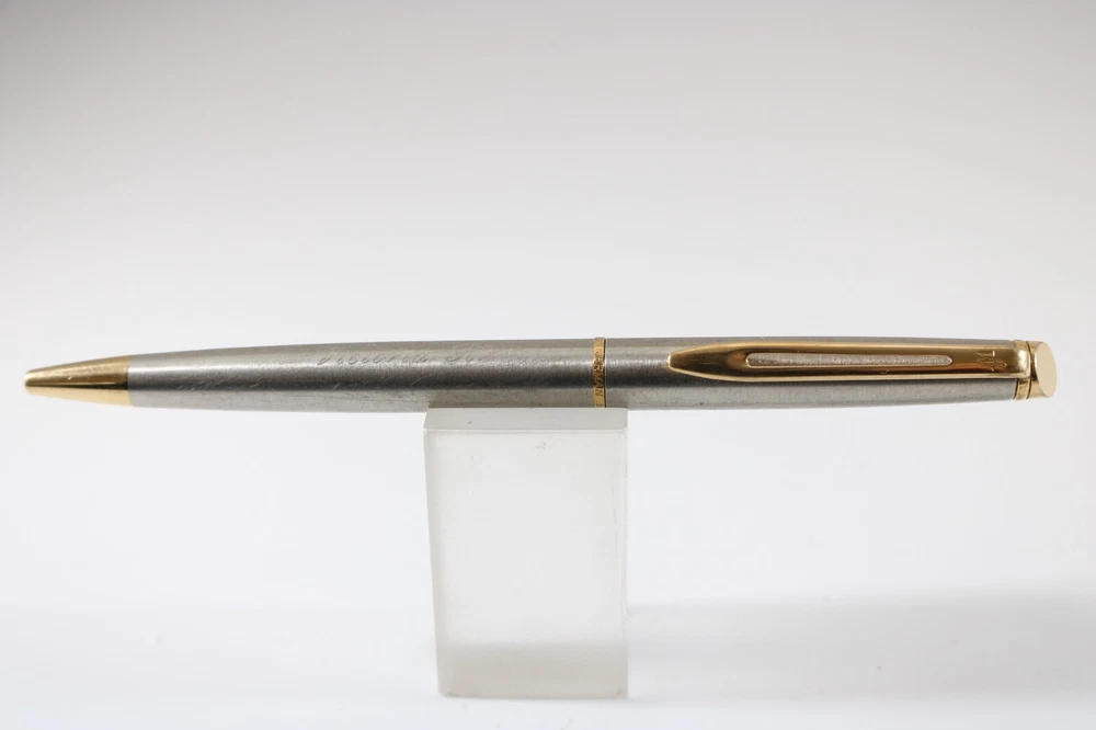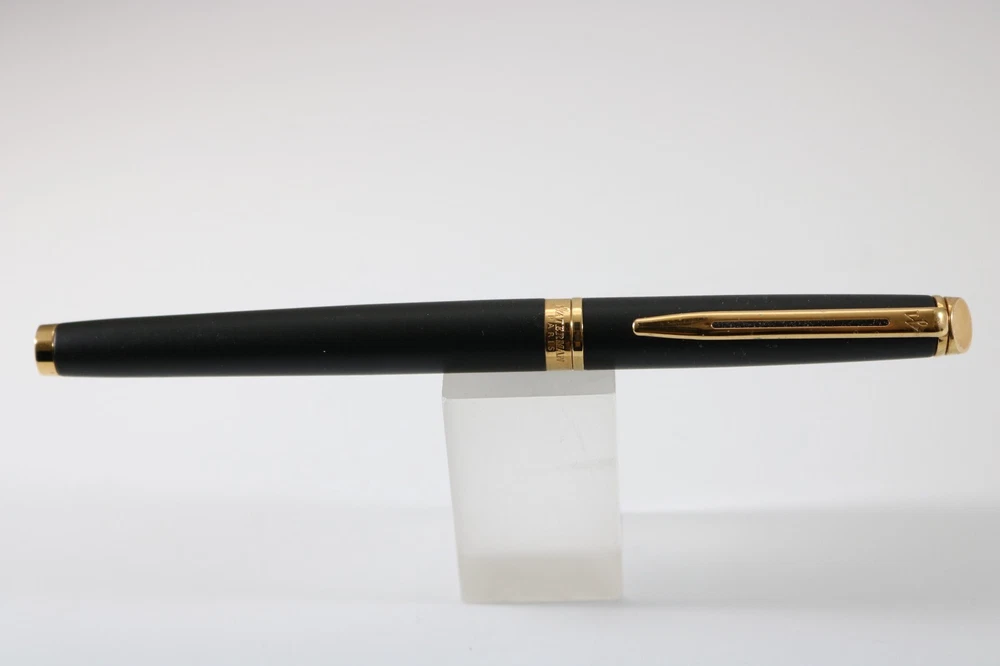 You will be buying 1 x Vintage Waterman Hemisphere Fountain and/or Ballpoint Pen, 20 Different Items To Choose From, Select From Drop Down Menu. Vintage Waterman Hemisphere Flighter Ballpoint Pen, finished in Brushed Stainless Steel with Chrome Plated Trim. Vintage Waterman Hemisphere Flighter Ballpoint Pen, finished in Brushed Stainless Steel with Chrome Plated Trim. Vintage Waterman Hemisphere Epoxy Matt Black Medium Fountain pen with Gold Plated Trim. Vintage Waterman Hemisphere (Salesman's Sample) Rose Gold Ballpoint Pen with Chrome Plated Trim, Original Case & Instruction Leaflet. Fitted with a black refill and fully working. Vintage Waterman Hemisphere Flighter 0.5mm Mechanical Pencil wth Chrome Plated Trim, Fully Working With Lead Fitted, Spares & Eraser. Vintage Waterman Hemisphere Flighter Ballpoint Pen with Chrome Plated Trim (3) Vintage Waterman Hemisphere Polished Chrome Rollerball Pen with Gold Plated Trim. Vintage Waterman Hemisphere Flighter DeLuxe Ballpoint Pen with Gold Plated Trim. Vintage Waterman Hemisphere Matt Black Ballpoint Pen with Gold Trim (advert on the side of the cap for HINO.) Vintage Waterman Brushed Steel Ballpoint Pen with Chrome Trim. Vintage Waterman Hemisphere Lacquered Black Rollerball Pen with Chrome Trim (Lots of damage to the lacquer on the cap.) Vintage Waterman Hemisphere Brushed Steel Rollerball Pen with Chrome Trim (Discolouration/texture from the barrel compared to the cap, Professional personal engraving on the barrel which, reads "Derek," There is no refill with this pen. Vintage Waterman Hemisphere Matt Black Medium Fountain Pen with Gold Trim (Mint condition with black ink refill included.) Vintage Waterman Hemisphere Matt Black Rollerball Pen Cap Only (SPARE PART ONLY) Vintage Waterman Hemisphere Marine Translucent Blue Medium Fountain Pen with Chrome Trim (Mint condition with black ink included.) Vintage Waterman Hemisphere Lacquered Black Ballpoint Pen with Gold Trim (Mint condition, Existing black refill (not sure when this will need to be changed.) Professional pin on top of the cap as shown. Vintage Waterman Hemisphere Flighter DeLuxe Ballpoint Pen with Gold Trim (Good condition, There are visible marks and scratches present, There is also a personal/professional engraving on the barrel which, reads "Victoria R.") Vintage Waterman Hemisphere Lacquered Black Ballpoint Pen with Gold Trim (2) (Good to very good condition, There is wear to the gold plate on the middle band, along with some minor marks to the lacquered finish on the cap.) Vintage Waterman Hemisphere Flighter DeLuxe Ballpoint Pen with Gold Trim (Missing its pocket clip, The mechanism works as it should.) Vintage Waterman Hemisphere Flighter Ballpoint Pen with Chrome Trim (Very light personal engraving on the cap, The mechanism works as it should.) Vintage Waterman Hemisphere Flighter Ballpoint Pen with Chrome Trim (Personal engraving on the barrel which, reads "Lynda Doona," are shown, The mechanism works as it should but it will require a new refill.) There are NO refills or ink refills with these pens, there are also NO cases with these items. Please note, that the display stands used are not included and are for illustrative purposes only.