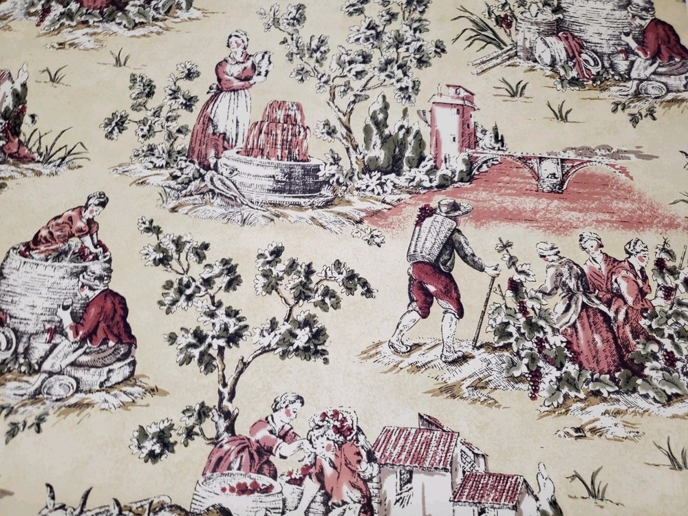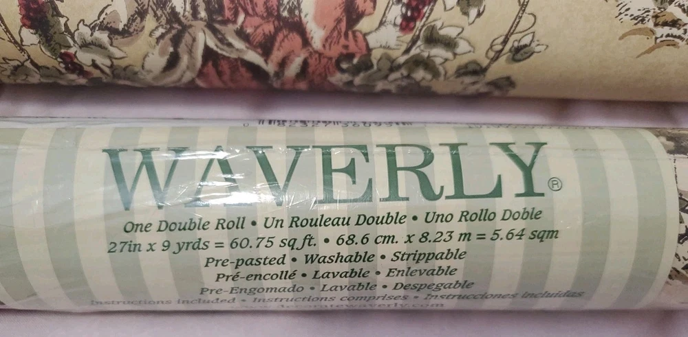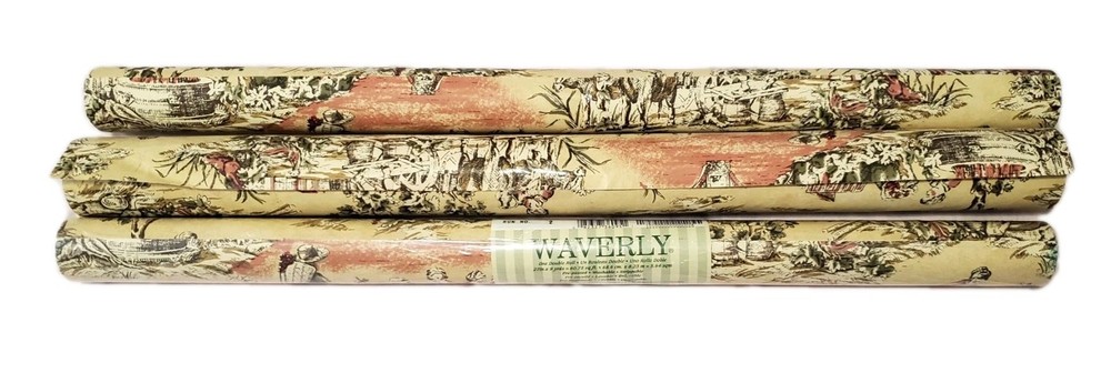 Vintage Waverly Wallpaper Lot of 3 Double Rolls – "Country Life" Toile Elevate your home with the timeless charm of French Country Life Toile de Jouy . This vintage lot of Waverly wallpaper features the iconic "Country Life" pattern (No. 5501540), a sophisticated Pastoral Landscape and Figural Print in a beautiful Neutral Cream and Terracotta colorway. Perfect for Grandmillennial Traditional Decor or a Cottagecore Aesthetic , this high-quality paper adds instant "Heritage Storytelling" to any room. Product Specifications: • Brand: Waverly (Authentic Made in USA) • Pattern: "Country Life" Pastoral Toile (Run No. 2) • Quantity: 3 Double Rolls (1 Sealed, 2 Opened/Taped) • Colorway: Neutral Ecru/Cream background with Burnt Orange/Terracotta scenes. • Material: Vinyl Coated Heavyweight Paper – Durable, washable, but with a high-end matte paper feel. • Application: Pre-pasted Water Activated Adhesive (Standard dip-and-hang). • Features: Washable and Dry-Strippable (entire strips remove easily for rent-friendly updates). • Roll Size: 27 inches x 9 yards (approx. 27 feet) per double roll. • Total Coverage: Approx. 182.25 sq. ft. (Great for a small room, powder bath, or a large accent wall). Condition Report: • Roll 1: Brand new, factory sealed in original plastic. • Rolls 2 & 3: Open rolls secured with tape. These appear to be full or near-full double rolls. • Note: I have rolled out one section to showcase the stunning detail. Please note the first few inches of the open roll show minor storage wear/distress as pictured, but the rest of the roll remains in excellent vintage condition. Why Buy This Lot? Waverly’s "Country Life" is a staple of French Provincial Farmhouse style. Finding three matching run-number rolls in this condition is a score for anyone looking to complete a small interior design project without paying modern designer prices.