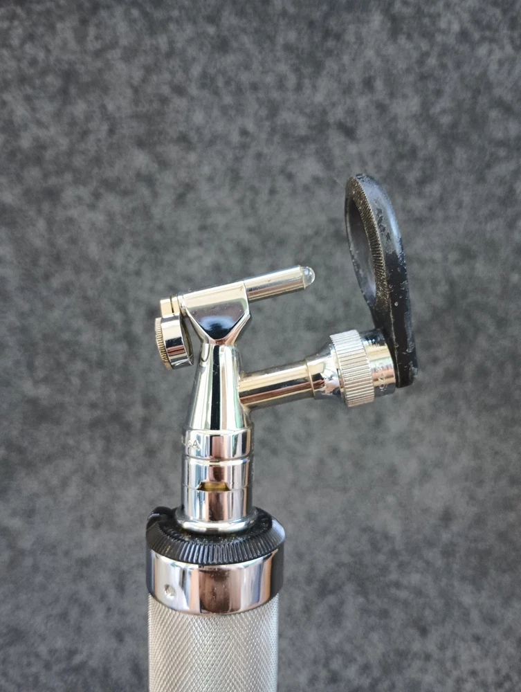 Otoscope has rust inside the battery compartment. It could be surface rust from the battery acid. Untested. Selling as is. Seems to be complete. If you have any questions or concerns feel free to reach out to us.