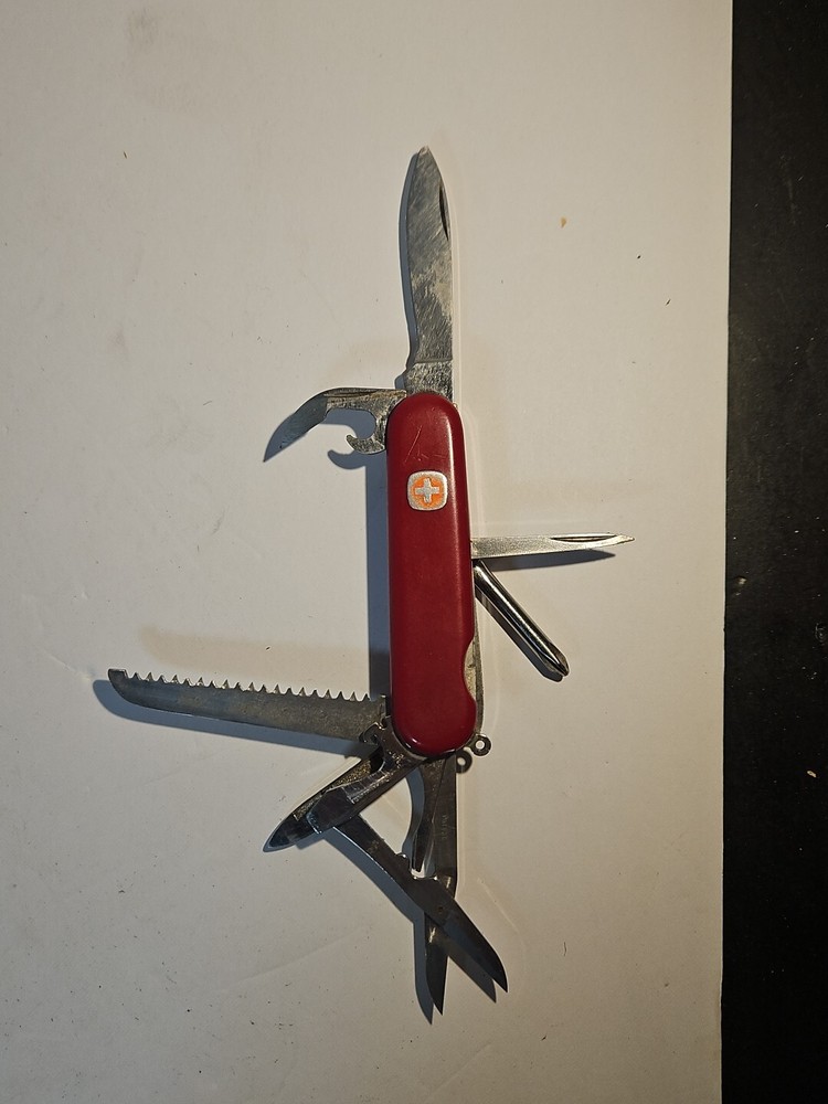 Wenger Backpacker II Swiss Army Multi Tool Retired Vintage Combo-serrated Fair This unit has imperfections. Wear on blades, markings and chips on red cover. See pictures. Tweezers included, but no toothpick. See pictures. Product will be shipped timely and packaged with care. Offers are encouraged. Please feel free to reach out with questions. Please see pictures. Thank you. Good used condition. Light wear from age and use. Markings from age and use. See pictures This Wenger Backpacker II Swiss Army Multi Tool is a must-have for any outdoor enthusiast. With a variety of tools including a punch, corkscrew, saw, and bottle opener, this multi-tool is perfect for any situation. The blade is made of stainless steel with a serrated edge and drop and clip point blade type. The handle is made of durable plastic and the tool is designed for ambidextrous dexterity. This original and authentic Wenger multi-tool is perfect for collectors and adventurers alike. The tool is designed for ease of use and safety, with a slipjoint lock type. The Backpacker II model was made in Switzerland and has a red color handle. Don't miss out on this amazing collectible and functional item. HLB2