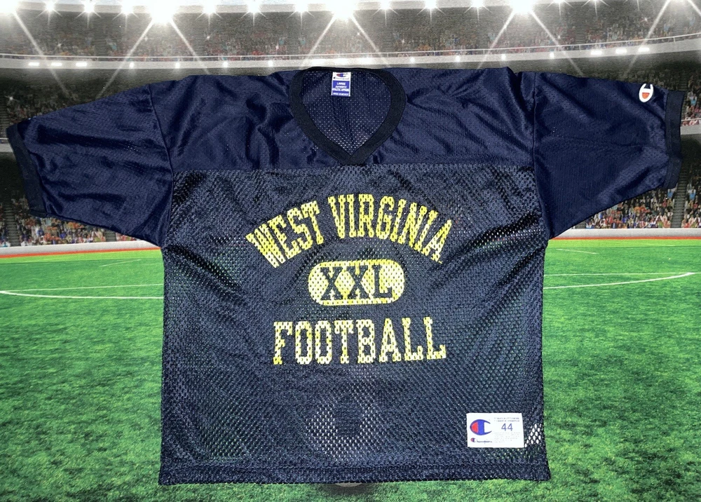 Show off your love for the West Virginia Mountaineers with this vintage football jersey from Champion. The blue unisex adult jersey is perfect for any fan of the team looking to support them during the pre-season. With a size of 44, this jersey is a great fit for anyone who wants to represent their favorite college team in style. The jersey features the team's name and logo, making it a great addition to any fan's collection. Whether you're heading to a game or just want to show off your team spirit, this vintage West Virginia Mountaineers jersey is the perfect choice.