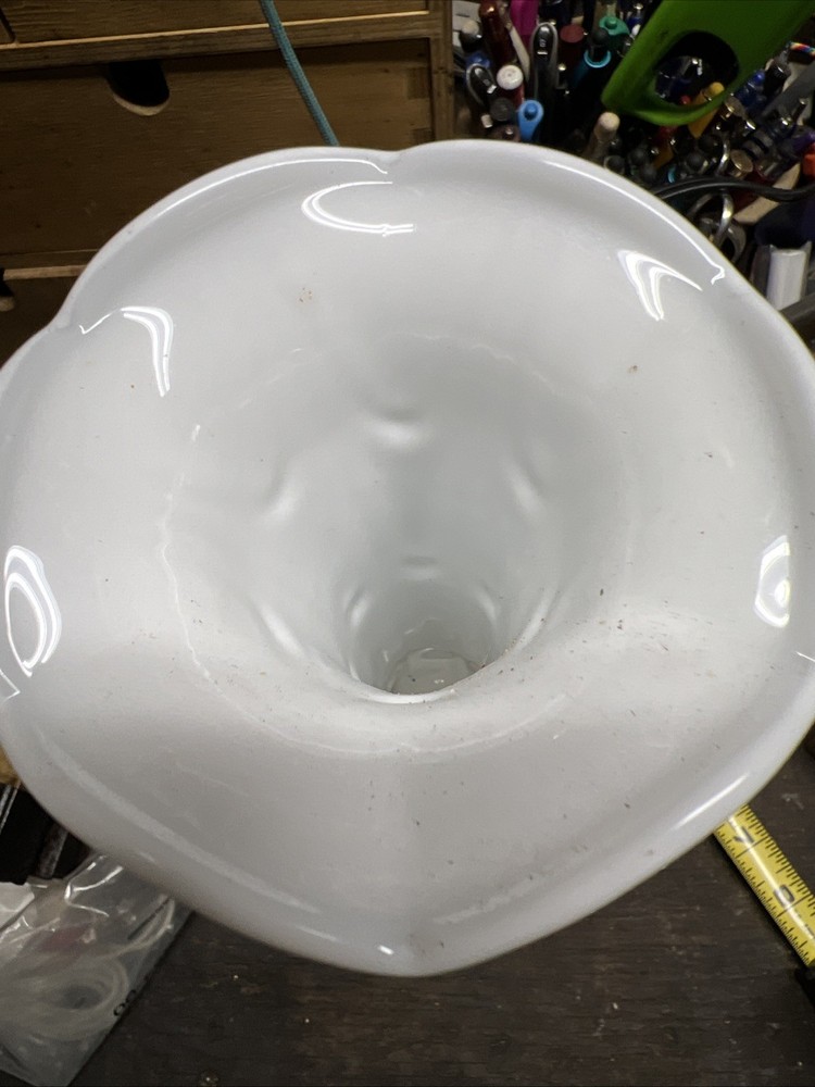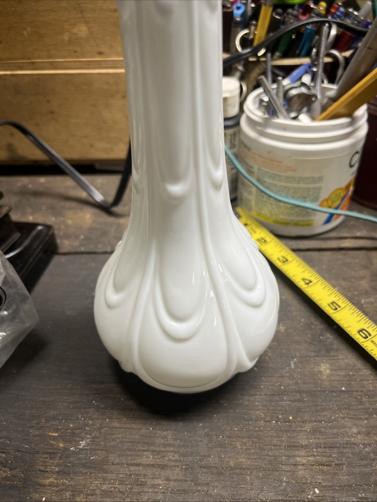 Vintage 1970's White Milk Glass Vase/Planter Ivy Vine Pattern. Ribbed Pedestal