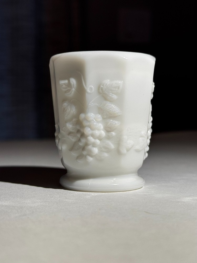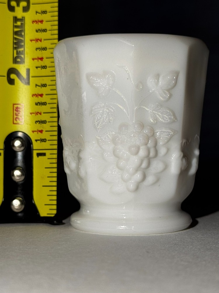 Color:WhiteBrand:UnmarkedMaterial:GlassType:Toothpick HolderSeller Notes:“No cracks or chips and in great condition.”Pattern:GrapesProduct Line:Paneled GrapeProduction Style:Milk Glass