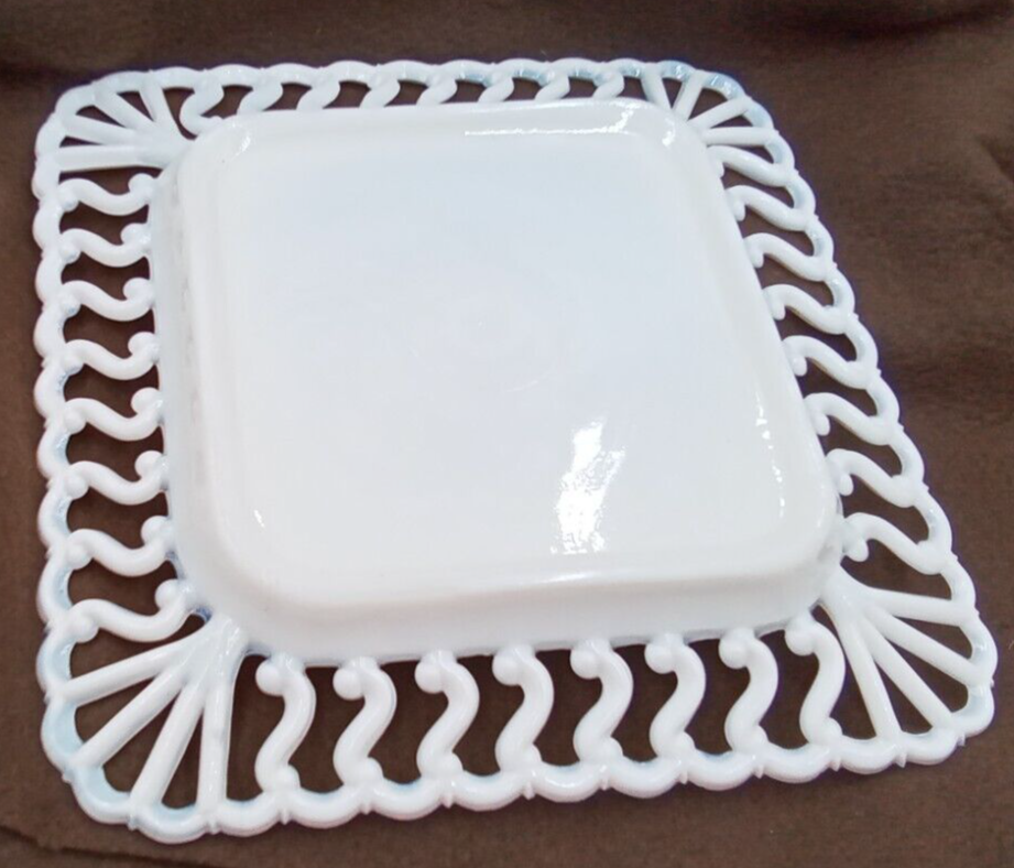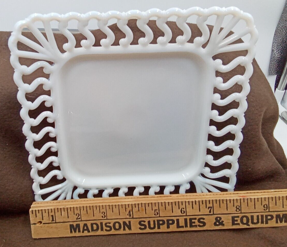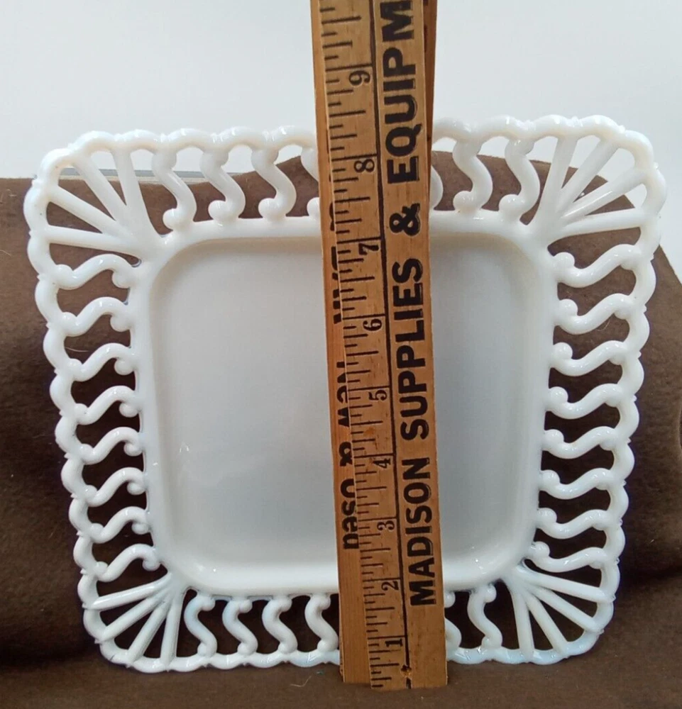 This charming vintage milk glass plate is a delightful find! The intricate squiggle and lace edge design adds elegant flair, perfect for display or light use. The 8" size is versatile, and the quality craftsmanship shines through. Seller packs with care—no hidden fees, just fair shipping. A lovely addition to any collection or tablescape! Check out their store for more treasures.