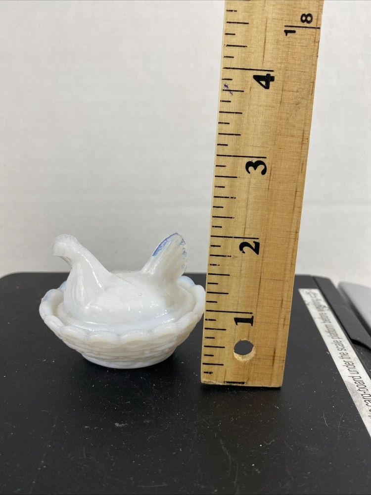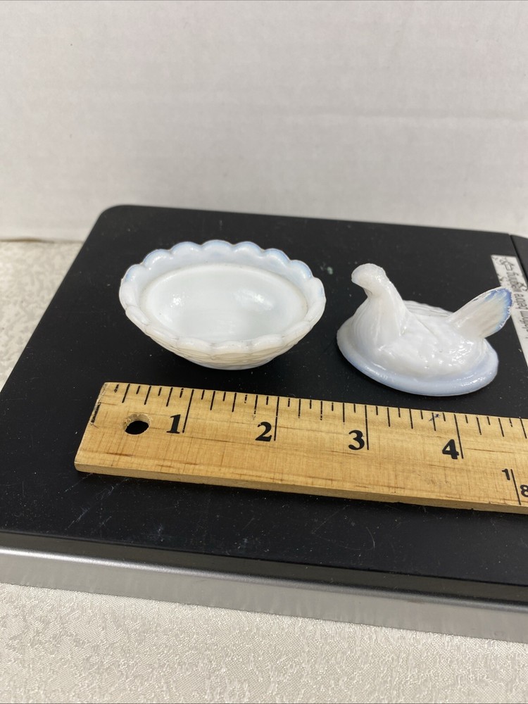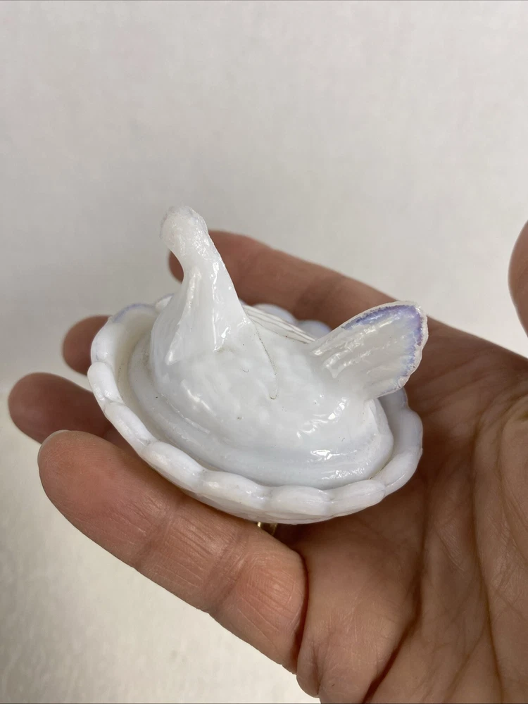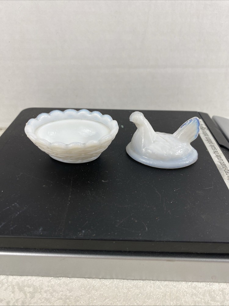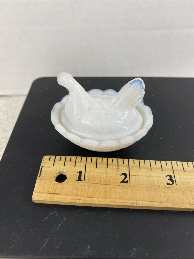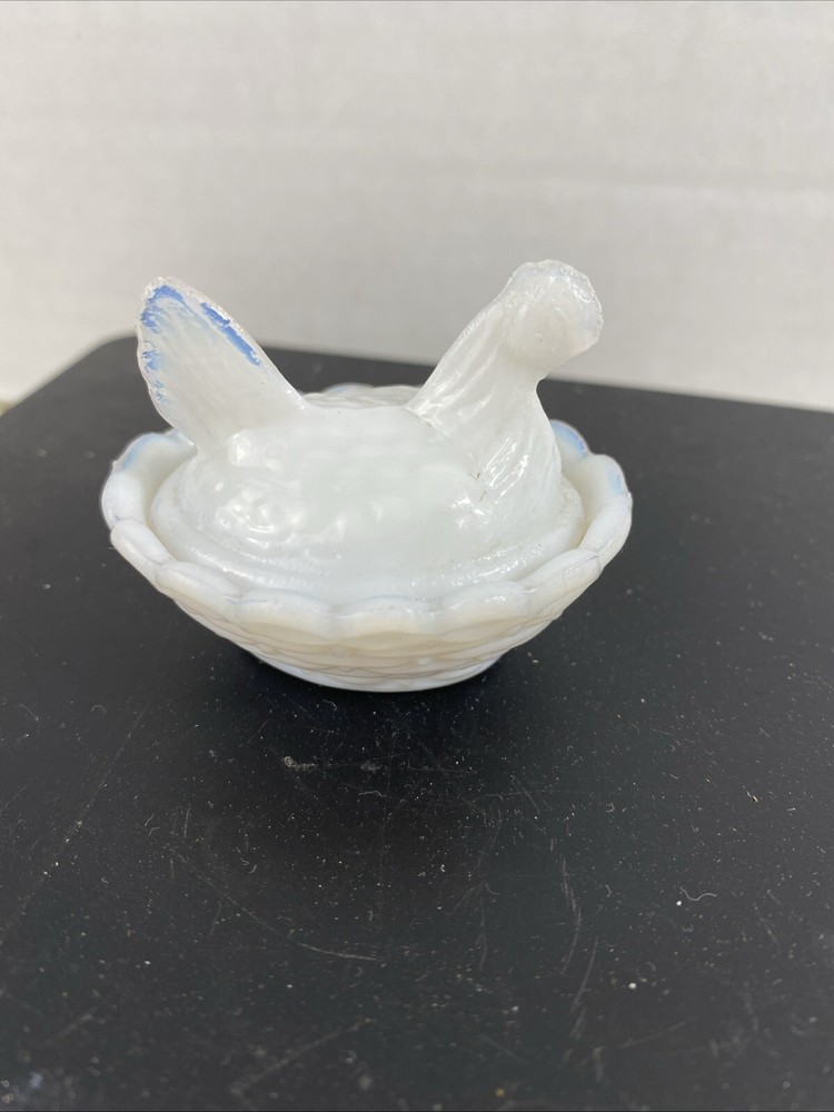 Vintage Westmoreland Opalescent Milk Glass Hen Trinket Dish Mini Nest
