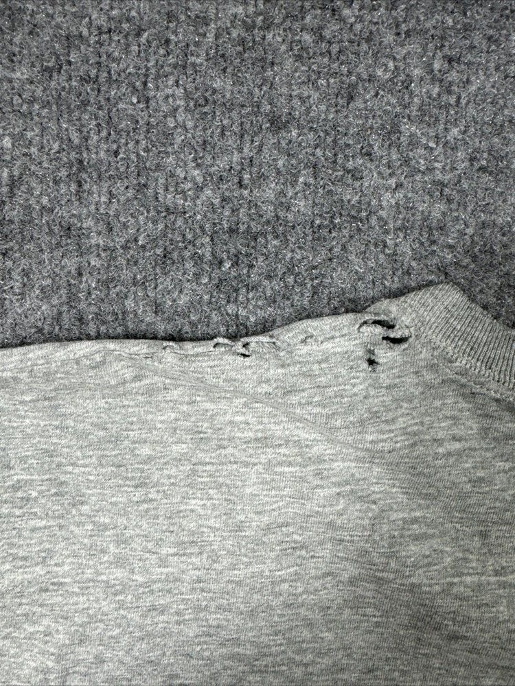 Show off your love for the USA and outdoor activities with this vintage Wilson tank top shirt. Made from lightweight and breathable cotton knit fabric, this shirt is perfect for gym and training, track and field, walking, weightlifting, cycling, school, cross training, CrossFit, basketball, bodybuilding, running, and jogging. The crew neck and pullover closure make it easy to wear, while the gray solid pattern and Wilson logo accents add a touch of style. This shirt is machine washable with medium fabric wash and is available in size 2XL. Get your hands on this Wilson Athleticwear top and show your support for sports and outdoor activities.