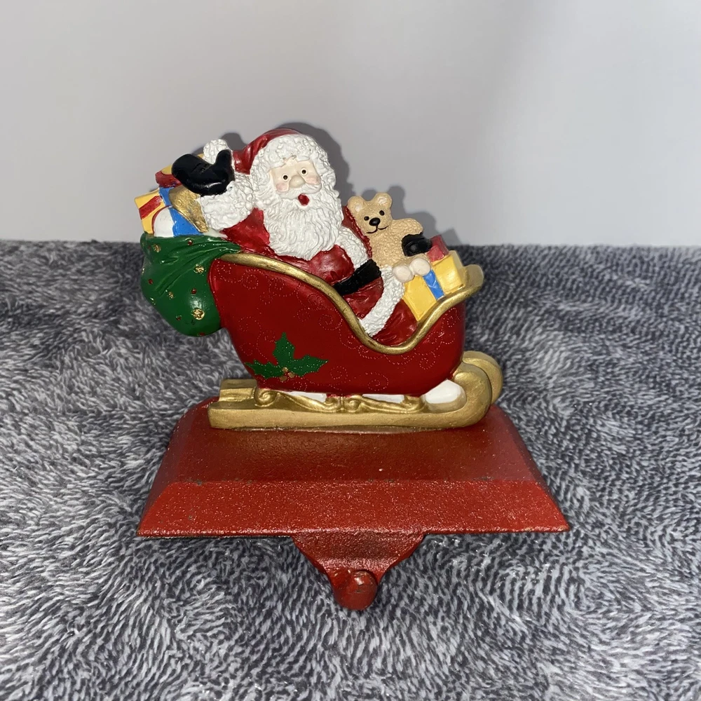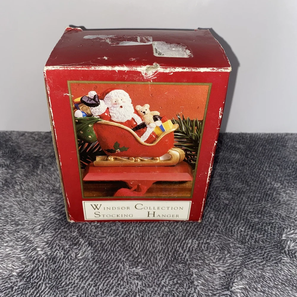 Vintage Windsor Collection Christmas Stocking Hanger Santa Sleigh Cast Iron NIB