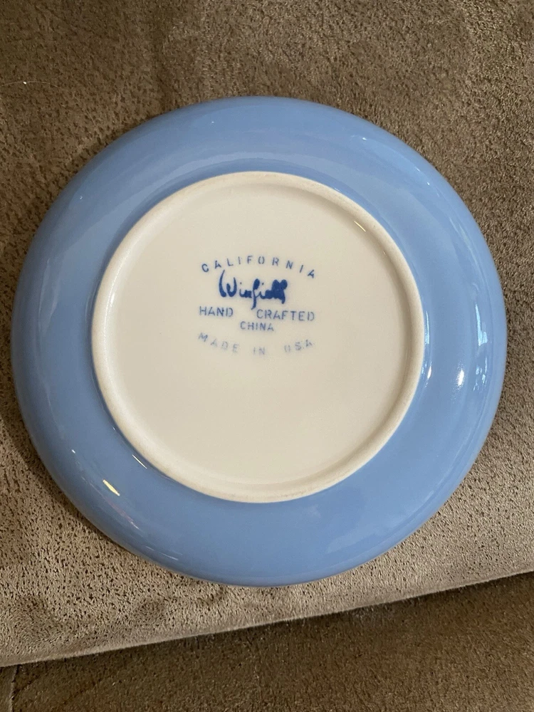Preowned in good condition set of 6 Vintage Winfield China Blue Pacific 5.75” Bread Plates. They are from one of the California Potteries and manufactured from 1929-1962. There are no chips or cracks but there are utensil marks consistent with age and use. Please see pics for details.