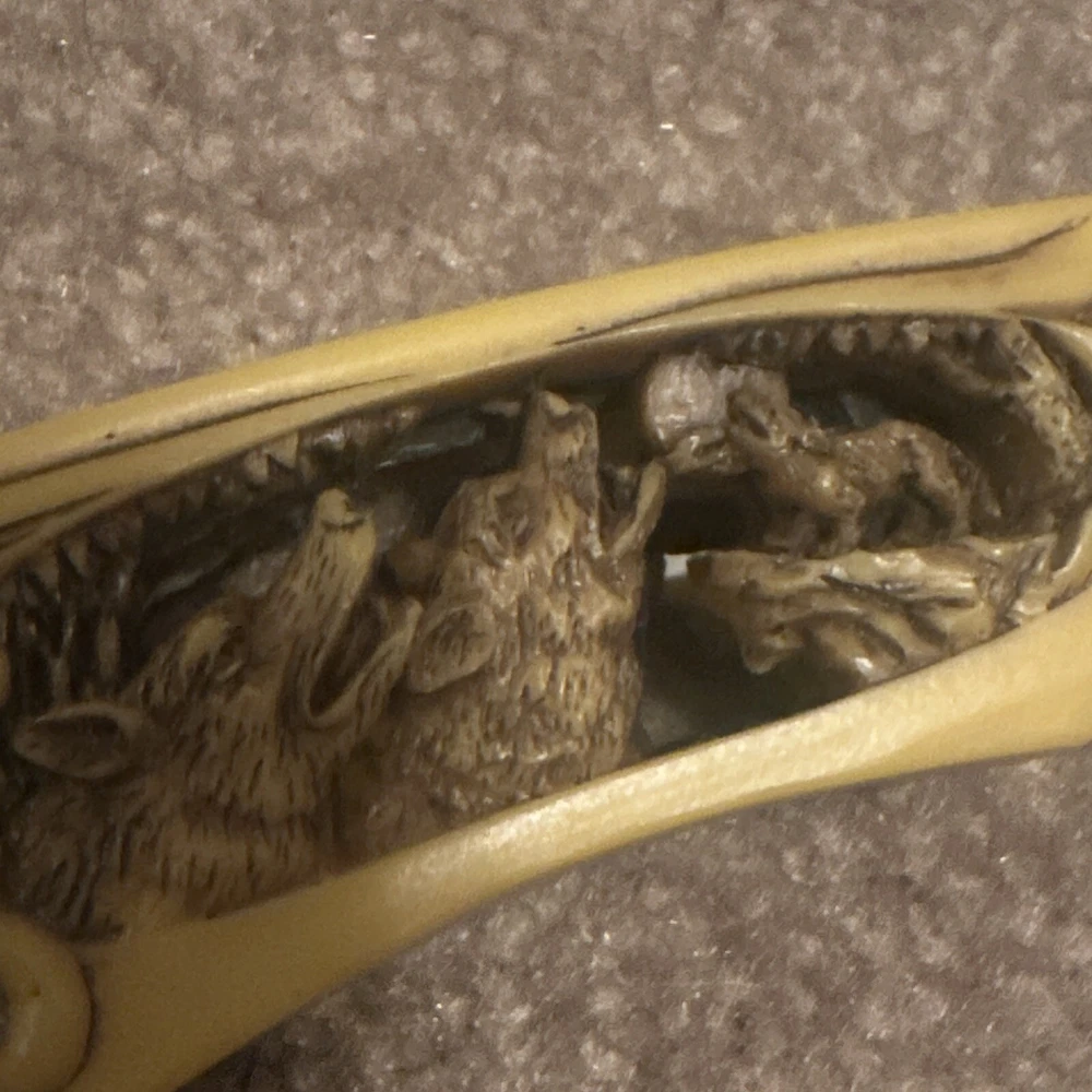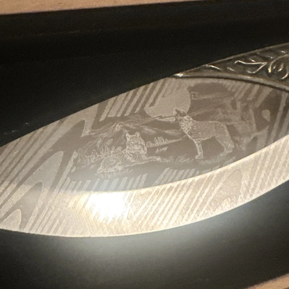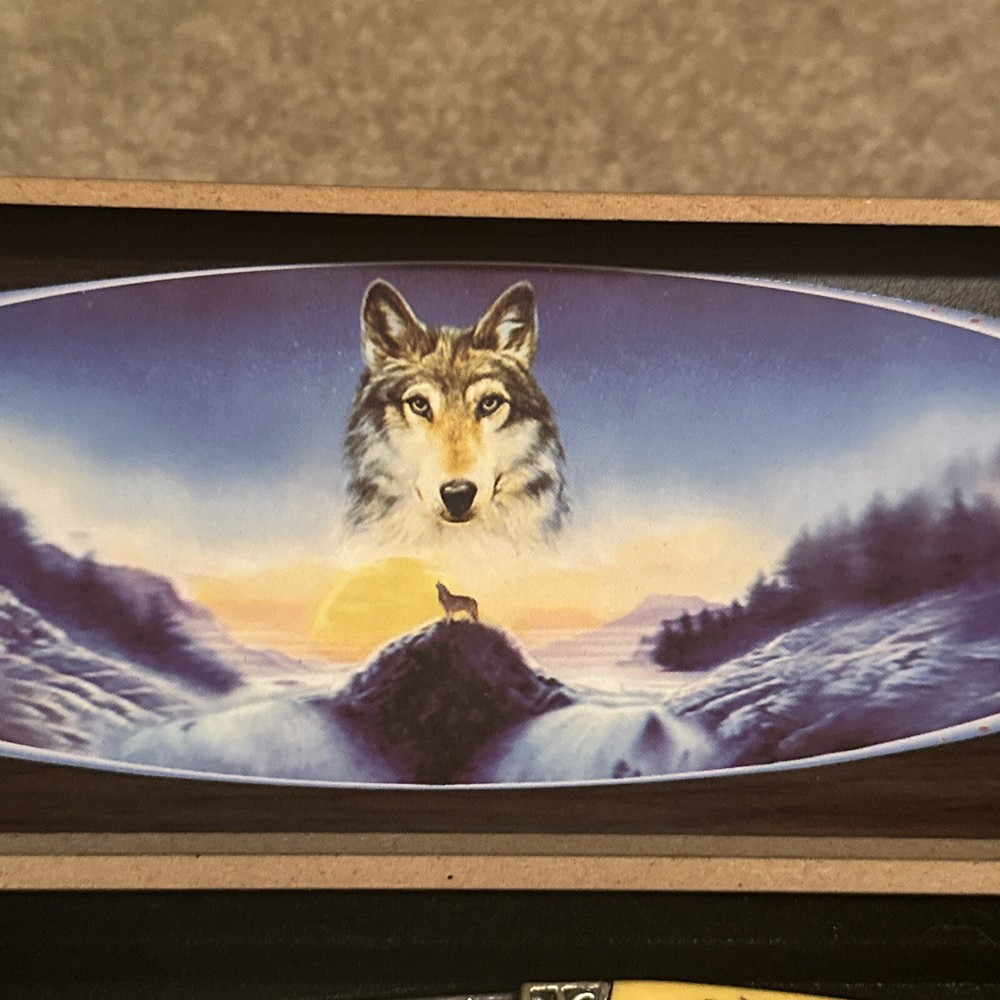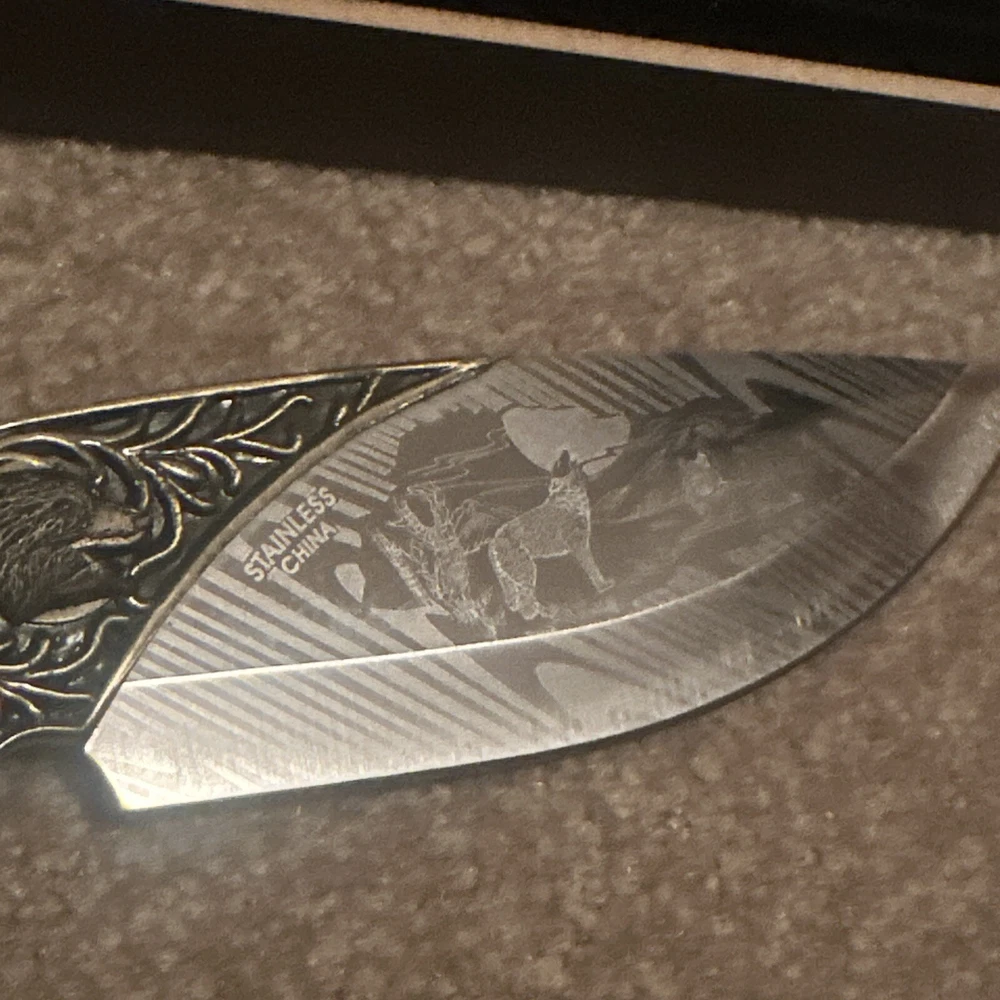 Vintage Wolves Hunting Engraved Knife with Box Outdoor Gift ST35