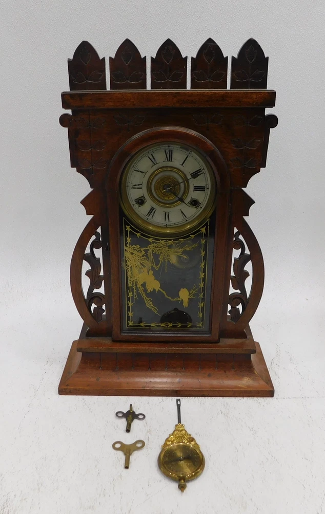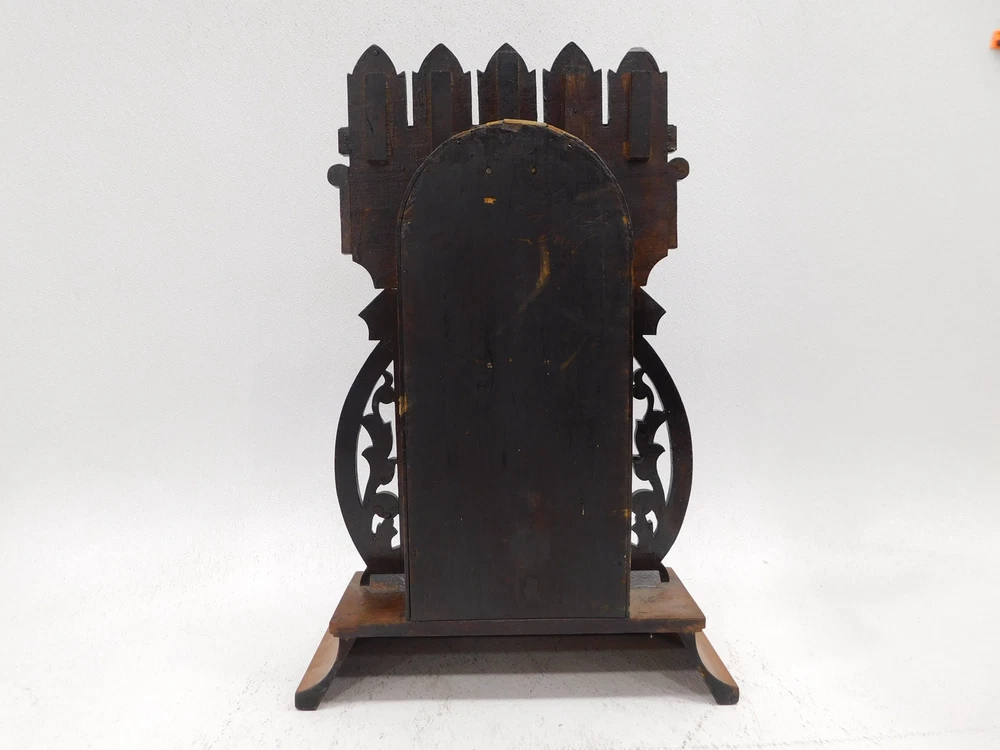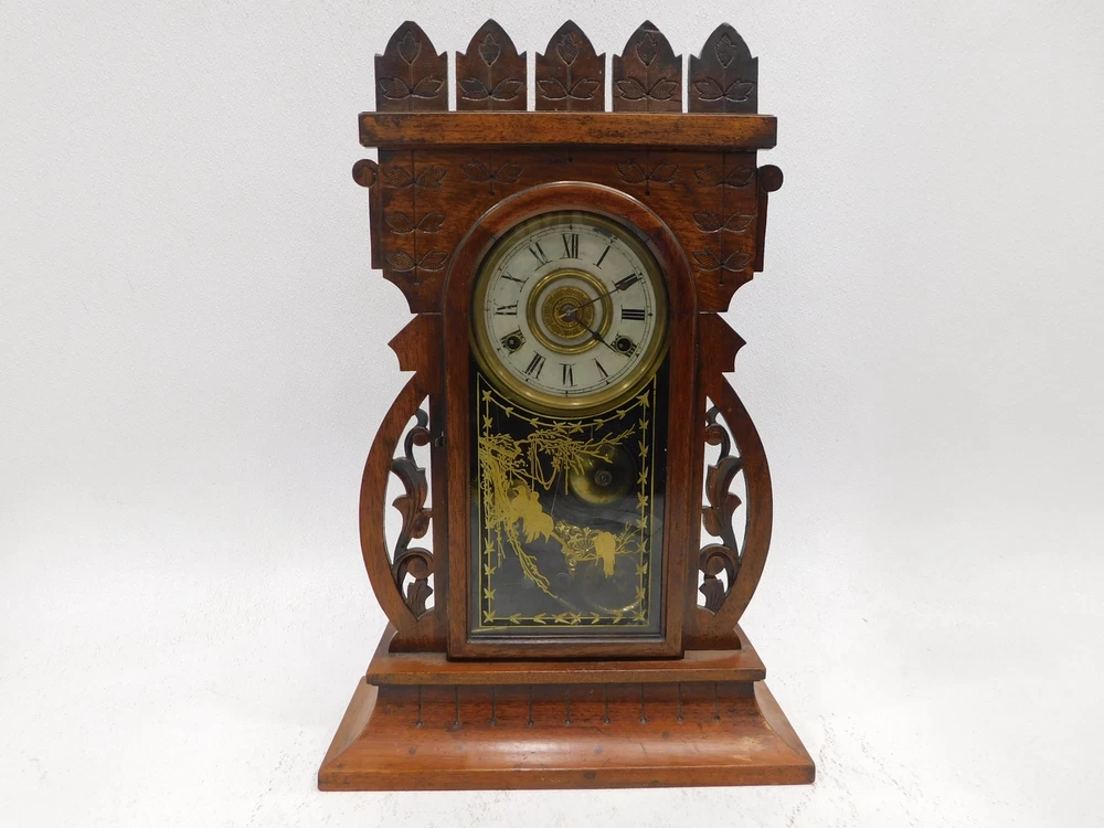 Title: Vintage Wood Gingerbread Style Mantel Clock Item Attributes Type : Mantel Clock Brand : Unbranded CONDITION: Used Timeless Charm: Vintage Wood Gingerbread Mantel Clock – A Classic Accent for Your Home Untested. Sold for parts and repair. ***Condition Disclaimer*** This is a pre-owned item being sold AS IS. No electronic/electrical/mechanical items are tested for functionality. If you have any questions regarding this item, please contact us PRIOR to bidding. Bulk lots are weighed in packaging and not returnable. We describe each item to the best of our ability; however, we are NOT experts in any field. All measurements are approximated. WEIGHT & DIMENSIONS: Weight: 7.00 Shipping Weight: 18.00 Dimensions: 21.00 x 14.00 x 6.00