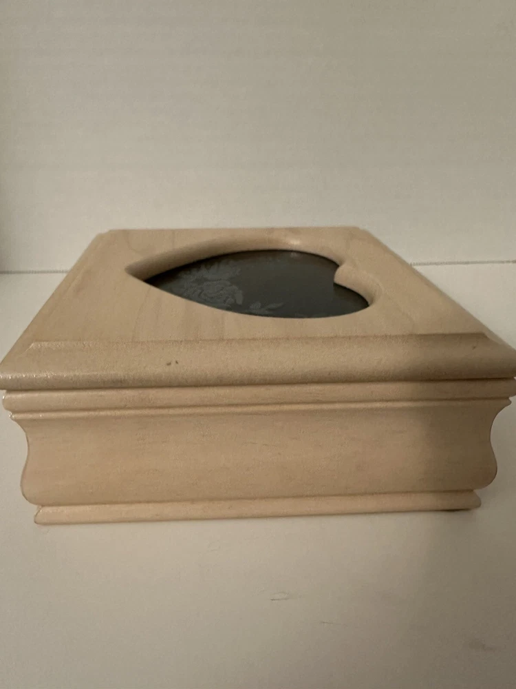 Vintage Wooden Jewlery/Trinket Box, With Glass Heart Shape & Roses On Lid.