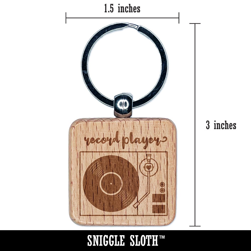 Vintage Wood Record Player Keychain Charm Engraved Retro Design