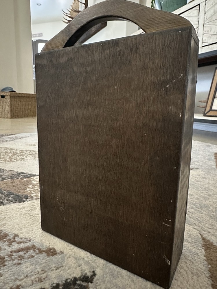 This vintage wood painter's artist portable carrying box is a unique addition to any collection. The box features a beautiful wood grain pattern and is perfect for storing trinkets, knick-knacks, or even small artworks. The medium-sized box is boxed and ready to be displayed on any shelf or table. The box is ideal for all occasions and is an original piece from the 1980s. It is perfect for adults who love art and features a boxing subject. The box is a part of the keepsake boxes collection and has a theme of art. Get this one-of-a-kind box today and add it to your collection!