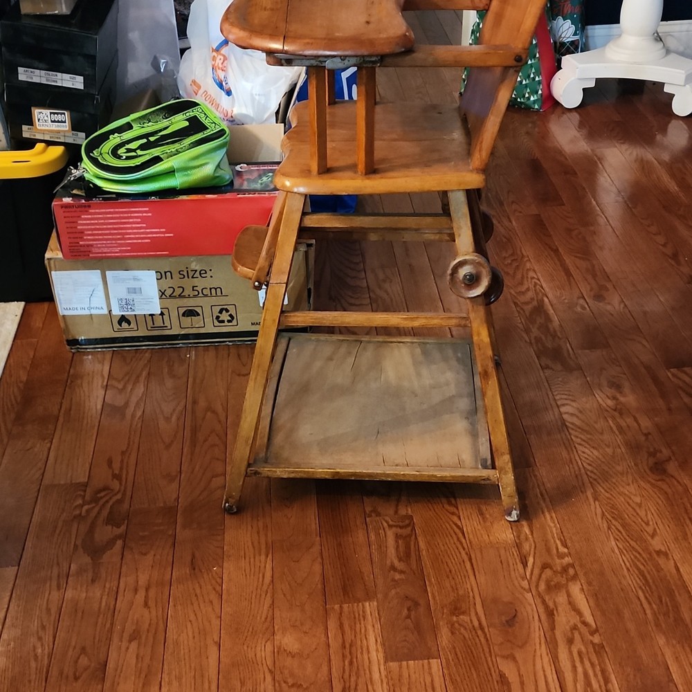 Vintage Wooden Baby High Chair Brown with Removable Tray