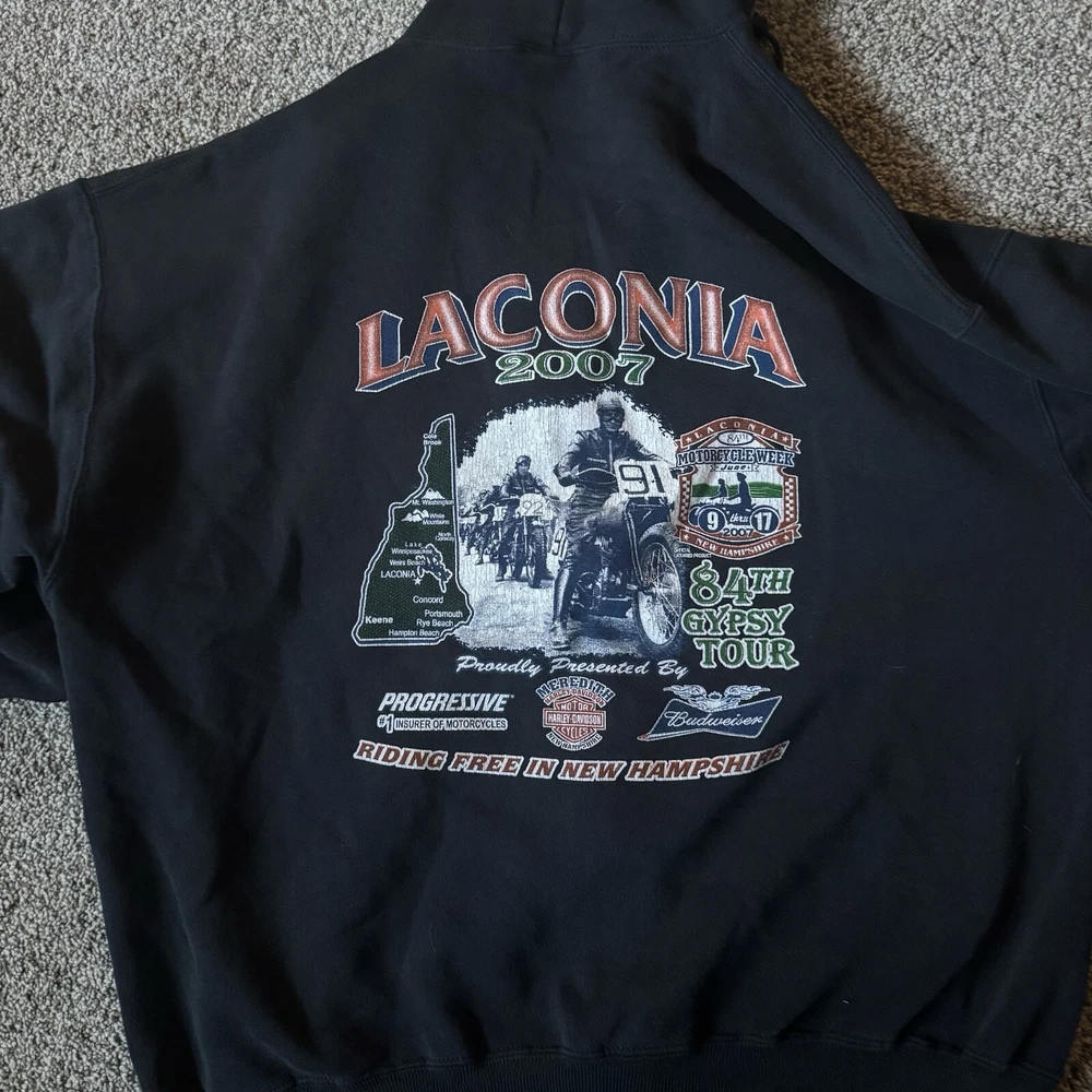 Vintage Y2K 2000s Laconia 2007 Women’s Zip Up Black Hoodie Sweatshirt XL